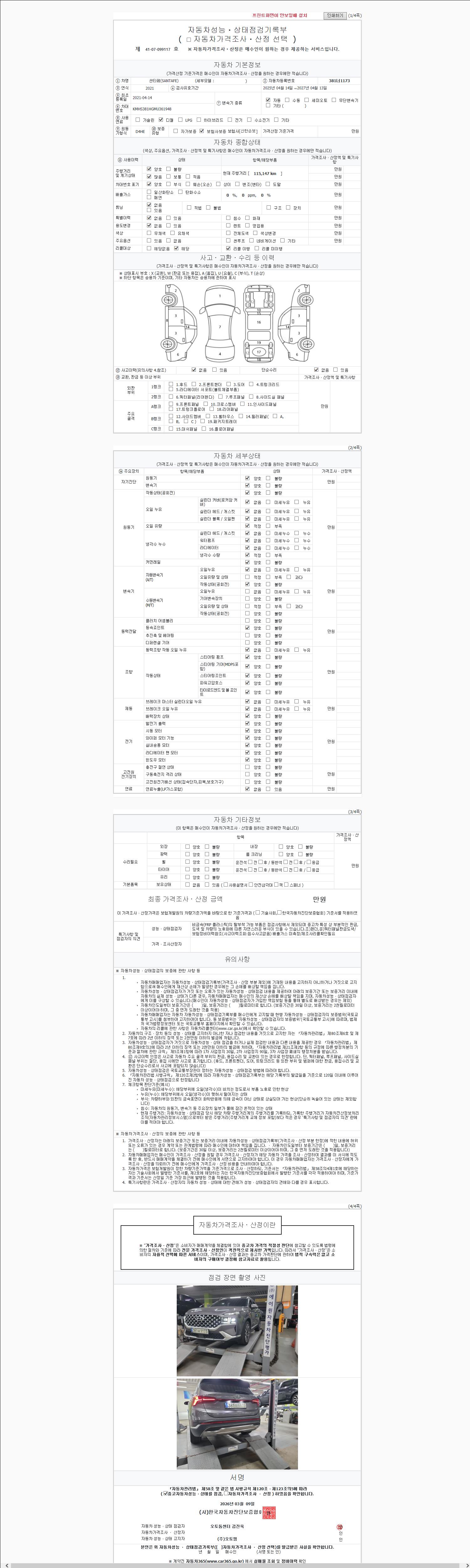 - 2. 차량 등록증이나 성능점검지 등을 상담자에게 요청및 확인하시고 사전에 미리 점검 하시기를 권유드립니다.