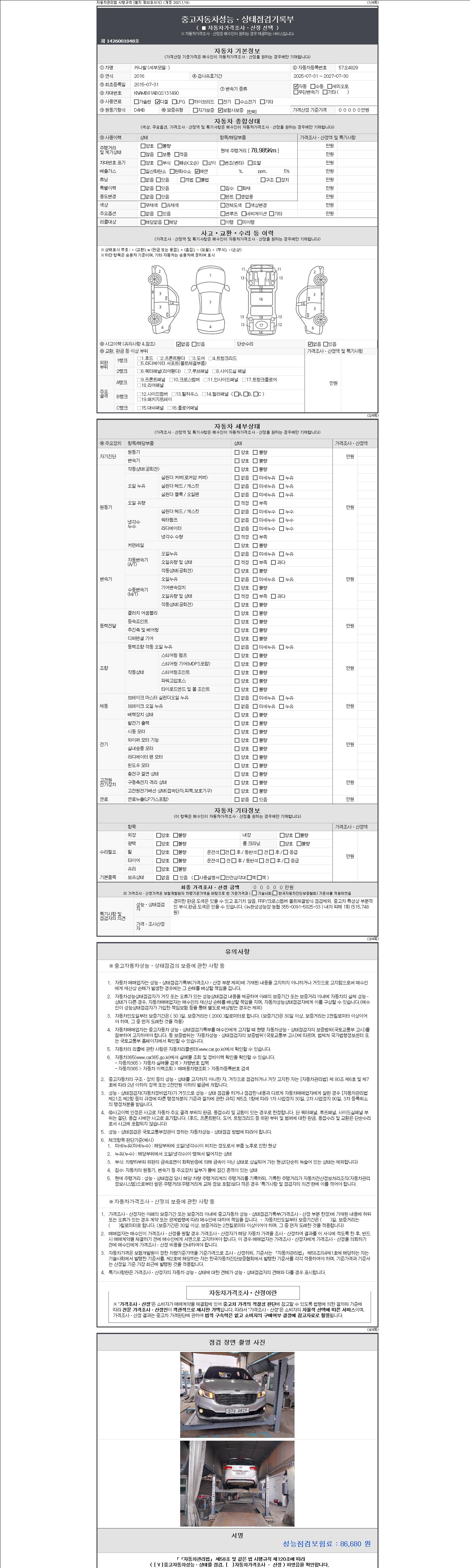 - 2. 차량 등록증이나 성능점검지 등을 상담자에게 요청및 확인하시고 사전에 미리 점검 하시기를 권유드립니다.