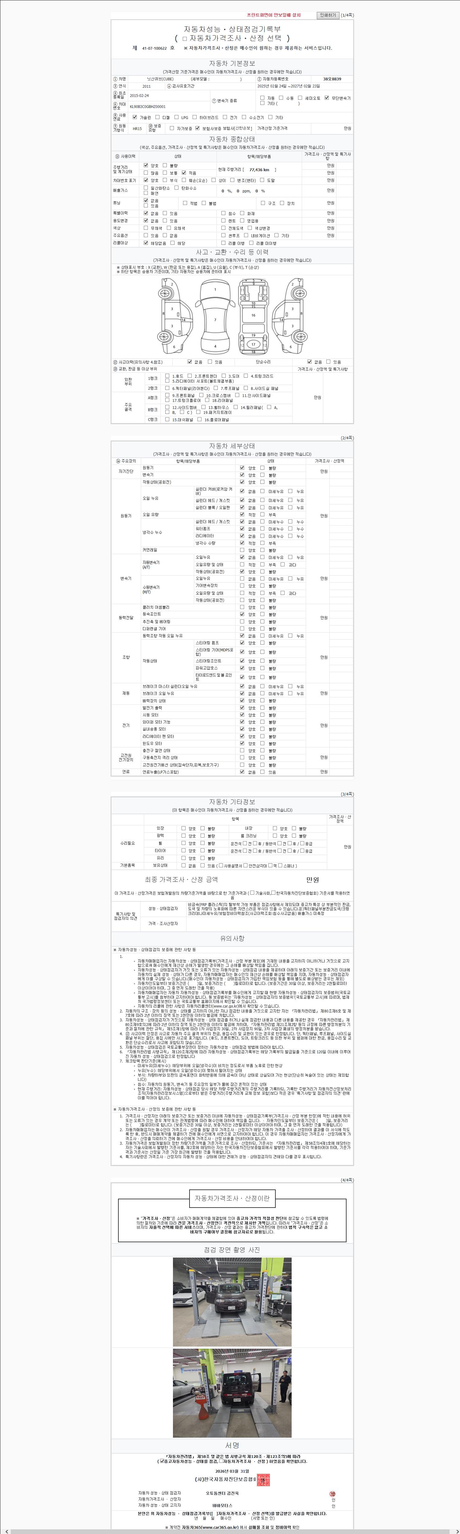 - 2. 차량 등록증이나 성능점검지 등을 상담자에게 요청및 확인하시고 사전에 미리 점검 하시기를 권유드립니다.