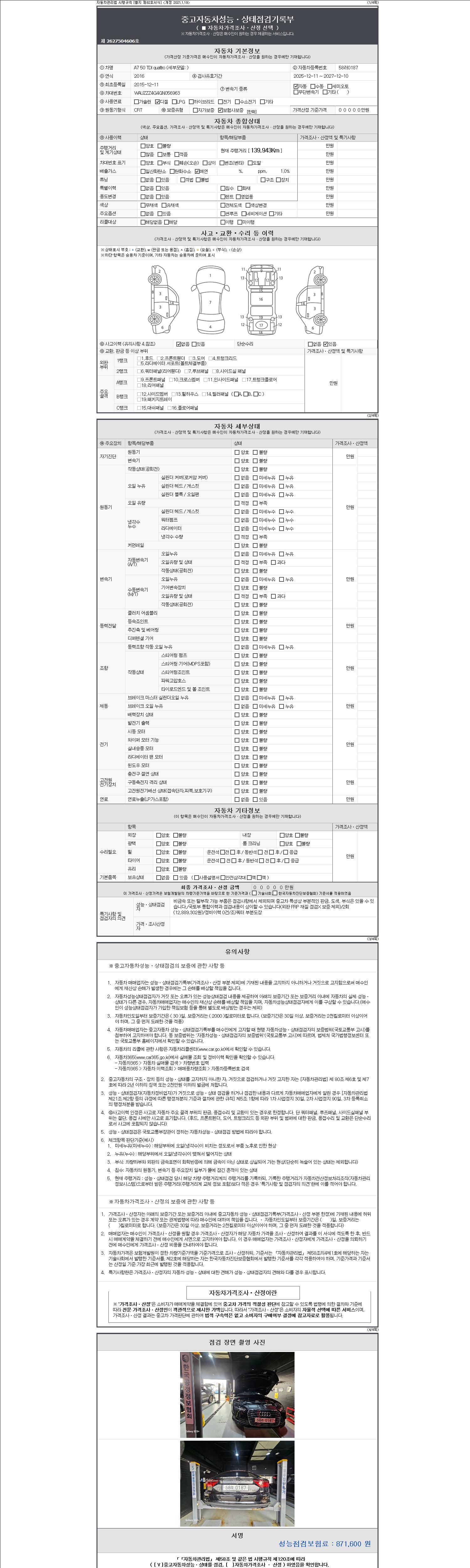 - 2. 차량 등록증이나 성능점검지 등을 상담자에게 요청및 확인하시고 사전에 미리 점검 하시기를 권유드립니다.