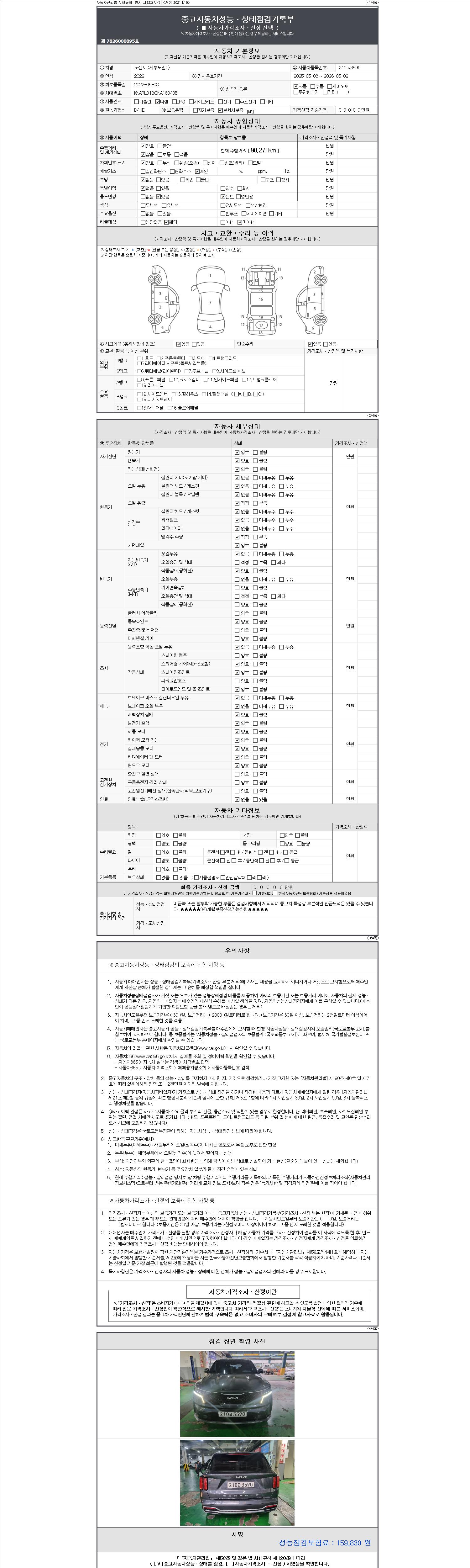 -중고자동차 매매업자를 통해 차량을 구입하실 경우 반드시 "중고자동차 성능, 상태점검 기록부"를 교뷰 받으셔야 하며, 매매업자는 반드시 의무 교부 하여야 압니다.
