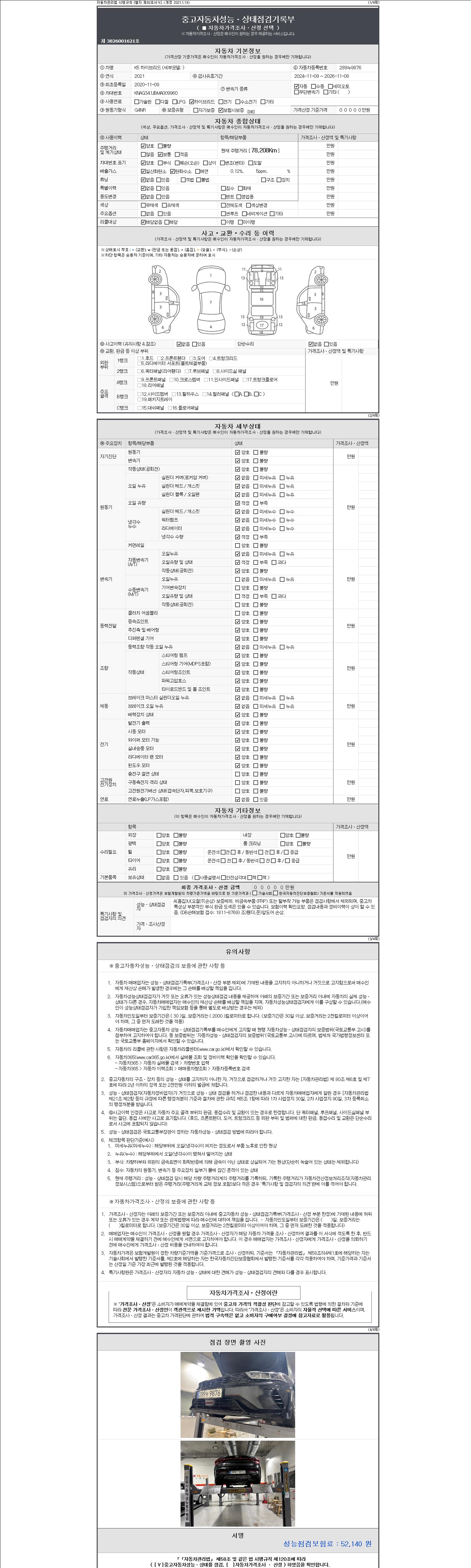 | 주행거리 | 78,208 km | 차량번호 | 289누9876 | 사고유무 | 성능기록부 참조 | 제시번호 | 제 2147483647 호 |