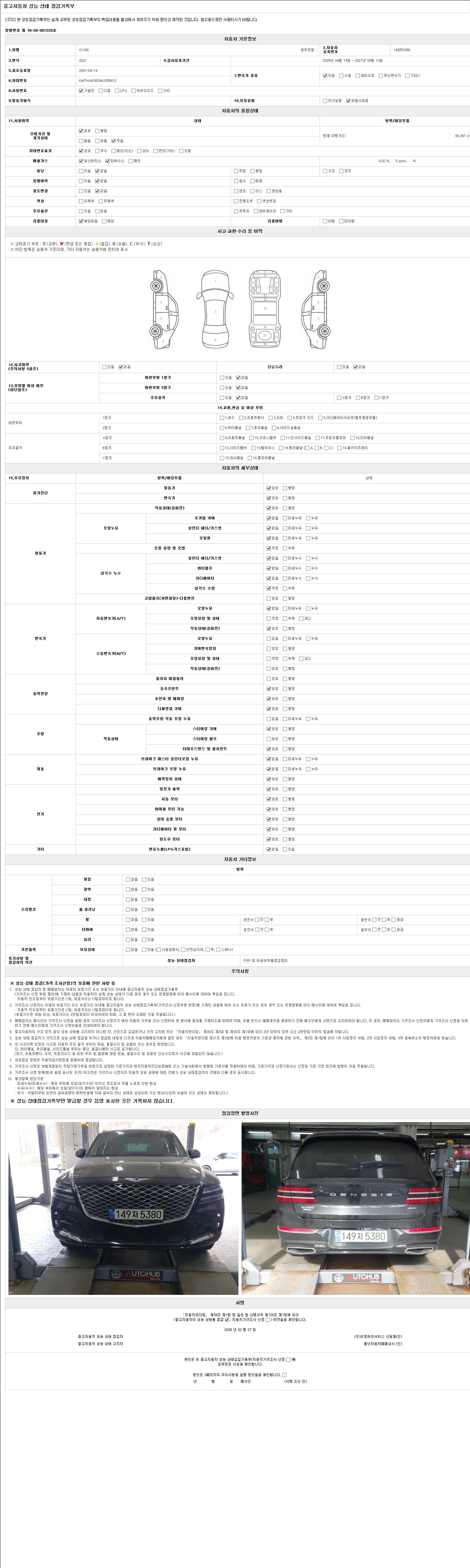 - 2. 차량 등록증이나 성능점검지 등을 상담자에게 요청및 확인하시고 사전에 미리 점검 하시기를 권유드립니다.