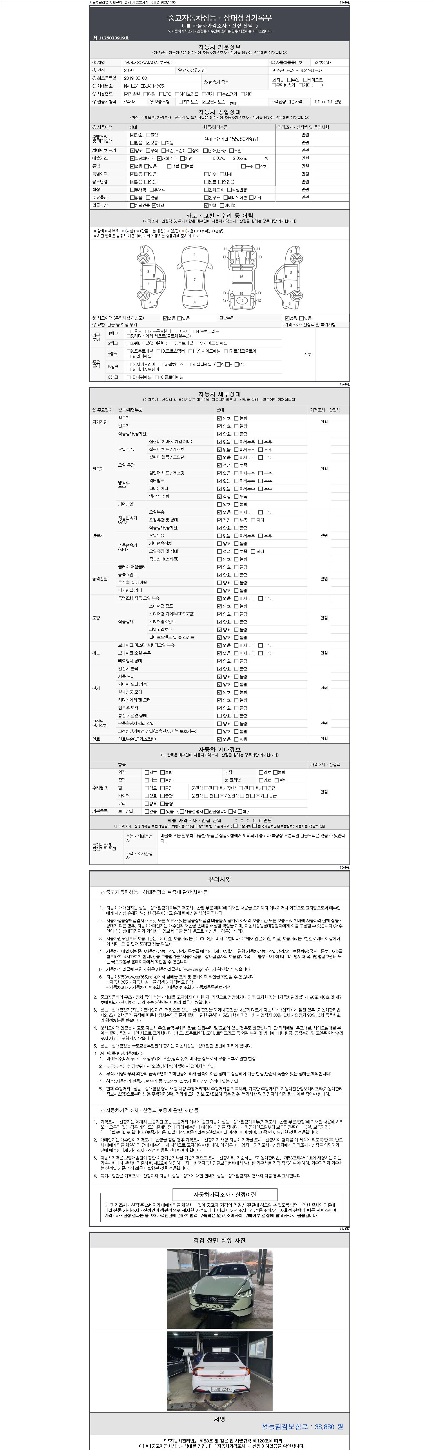 | 주행거리 | 55,802 km | 차량번호 | 58보2247 | 사고유무 | 성능기록부 참조 | 제시번호 | 제 2147483647 호 |