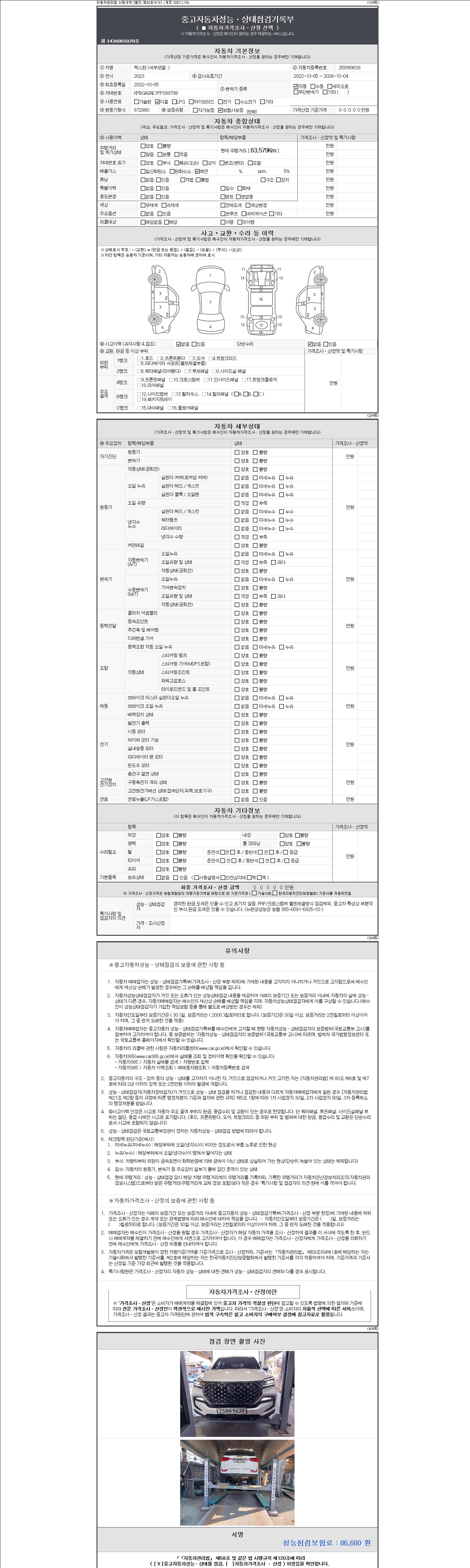 | 주행거리 | 63,579 km | 차량번호 | 258머9638 | 사고유무 | 성능기록부 참조 | 제시번호 | 제 2147483647 호 |