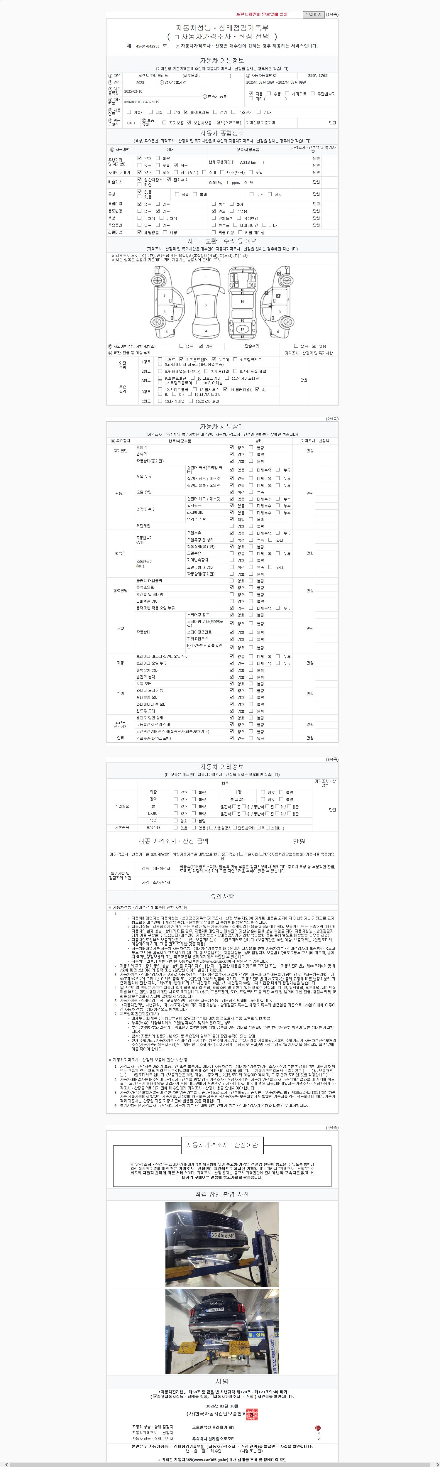 - 2. 차량 등록증이나 성능점검지 등을 상담자에게 요청및 확인하시고 사전에 미리 점검 하시기를 권유드립니다.