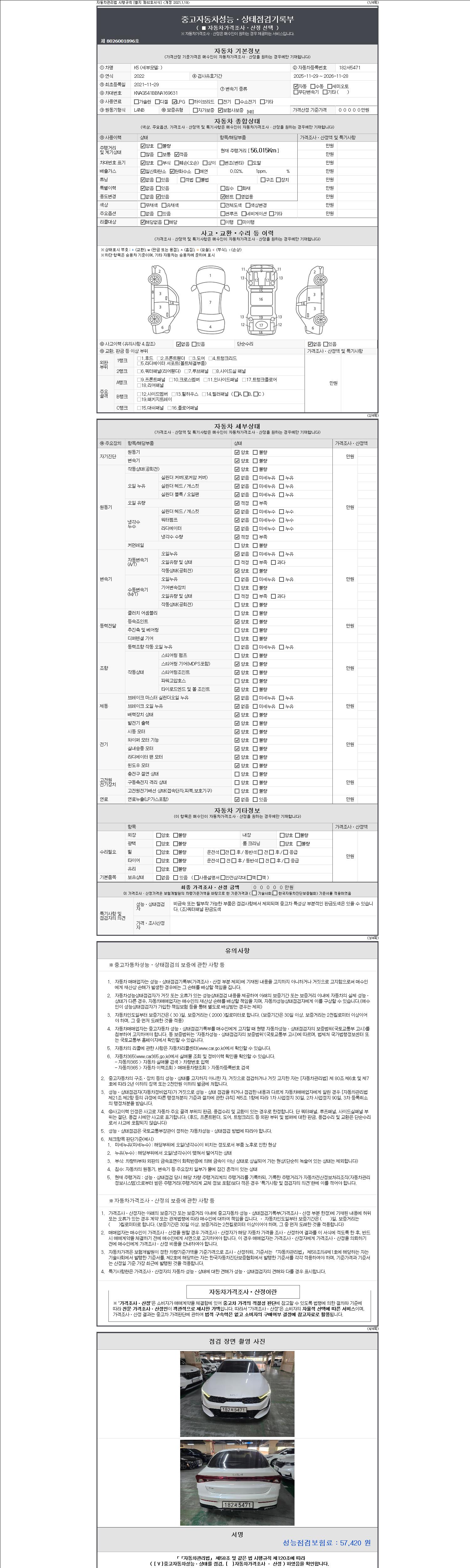 | 주행거리 | 56,015 km | 차량번호 | 182서5471 | 사고유무 | 성능기록부 참조 | 제시번호 | 제 2147483647 호 |