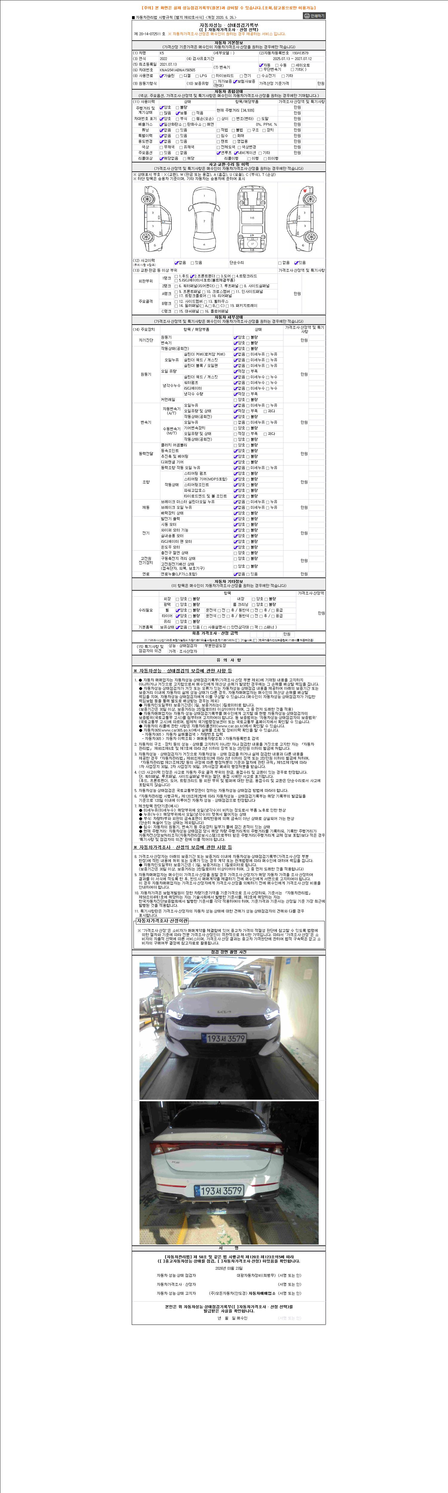 - 2. 차량 등록증이나 성능점검지 등을 상담자에게 요청및 확인하시고 사전에 미리 점검 하시기를 권유드립니다.