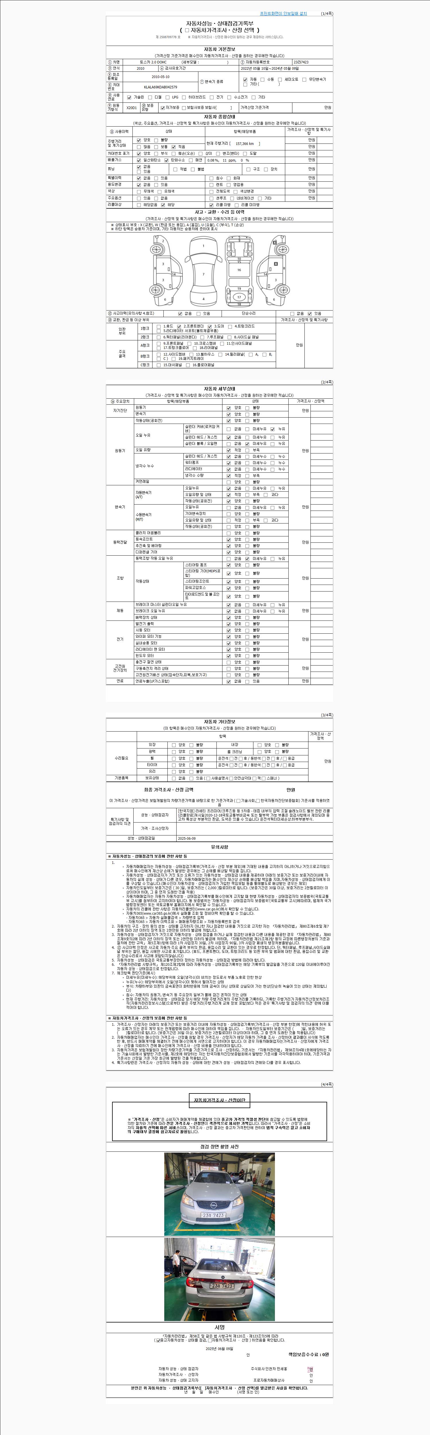 | 주행거리 | 157,370 km | 차량번호 | 23라7423 | 사고유무 | 성능기록부 참조 | 제시번호 | 제 2025071866 호 |