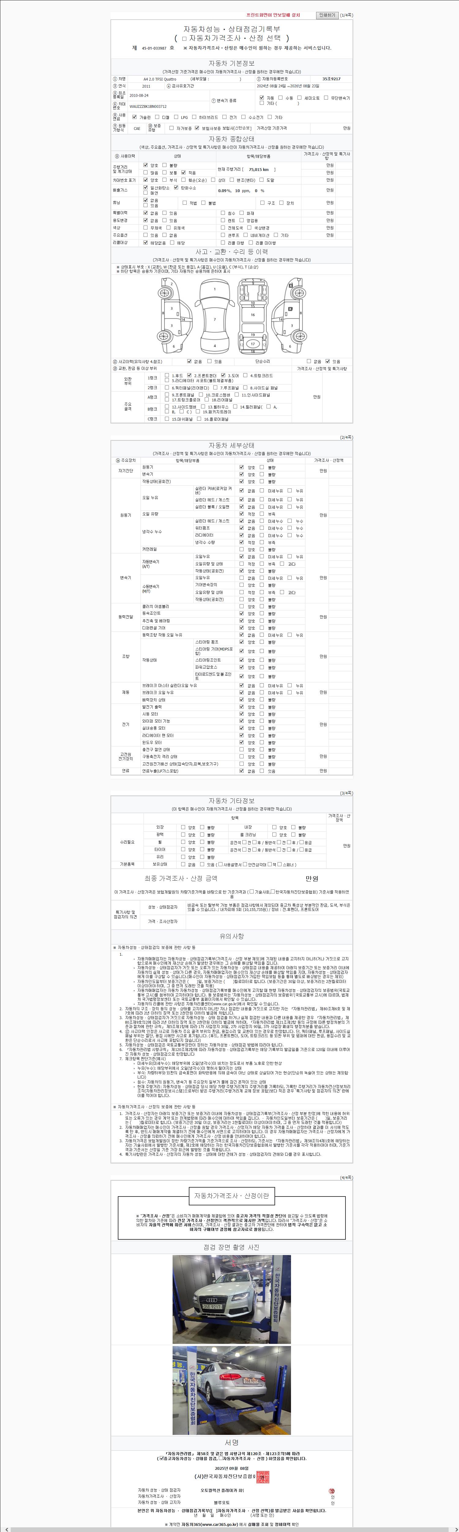 - 2. 차량 등록증이나 성능점검지 등을 상담자에게 요청및 확인하시고 사전에 미리 점검 하시기를 권유드립니다.