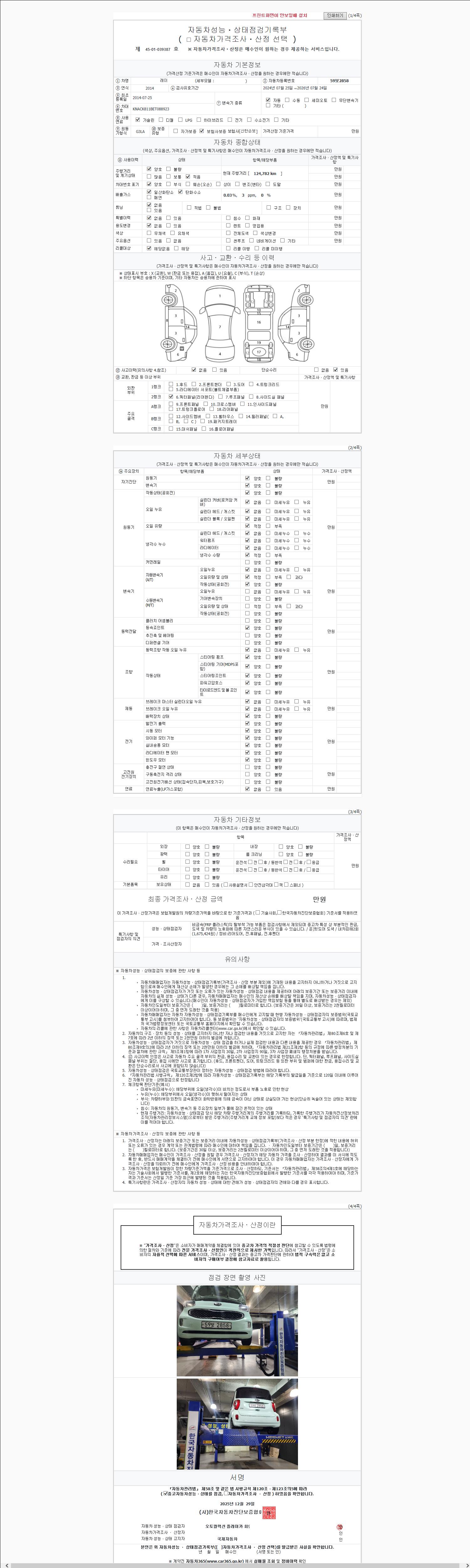 | 주행거리 | 124,782 km | 차량번호 | 59보2858 | 사고유무 | 성능기록부 참조 | 제시번호 | 제 2147483647 호 |