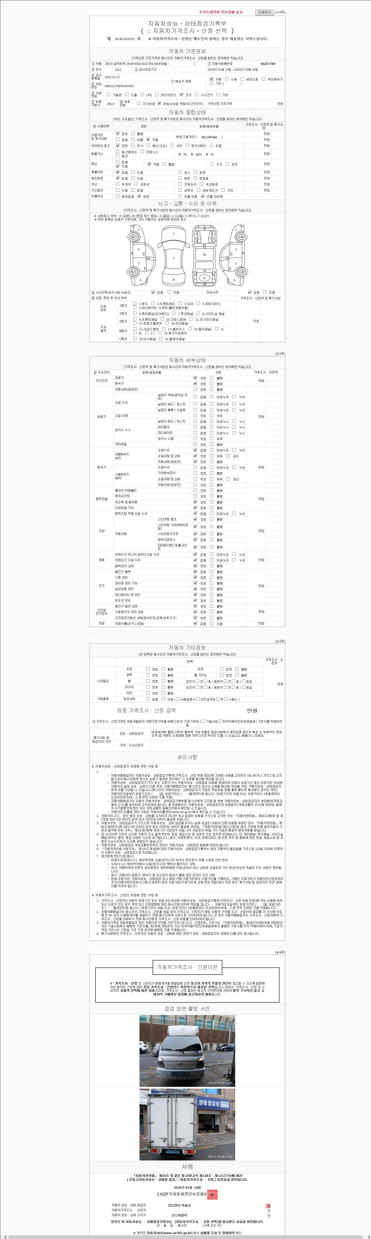 | 주행거리 | 10,129 km | 차량번호 | 96러7789 | 사고유무 | 성능기록부 참조 | 제시번호 | 제 2026019810 호 |