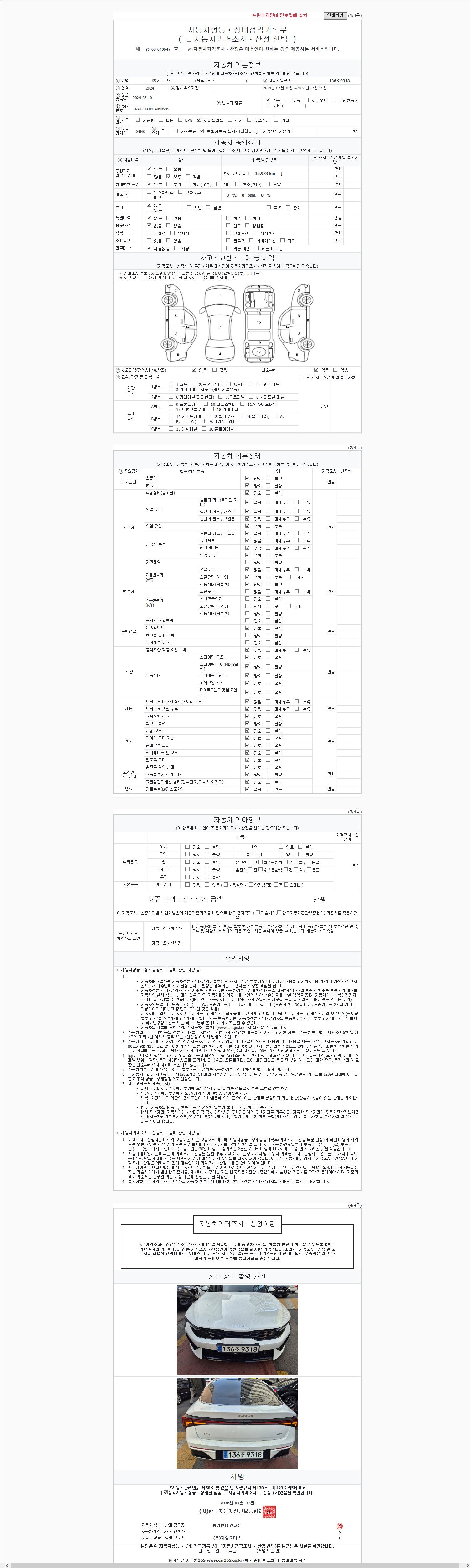 - 사고유무 : 성능기록부 참조