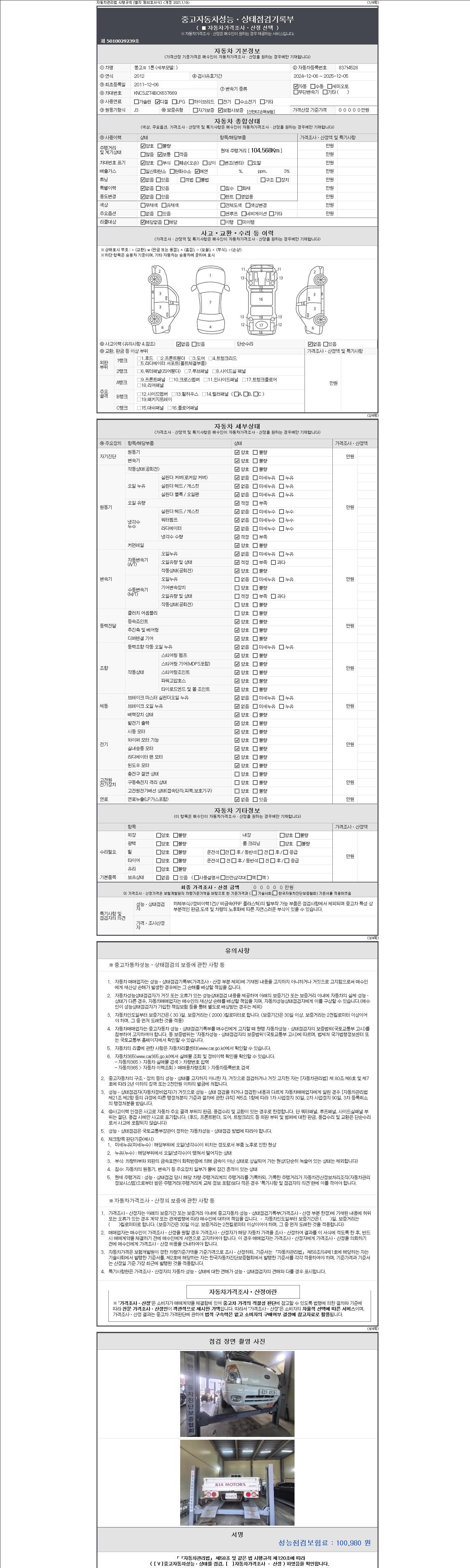 -중고자동차 매매업자를 통해 차량을 구입하실 경우 반드시 "중고자동차 성능, 상태점검 기록부"를 교뷰 받으셔야 하며, 매매업자는 반드시 의무 교부 하여야 압니다.