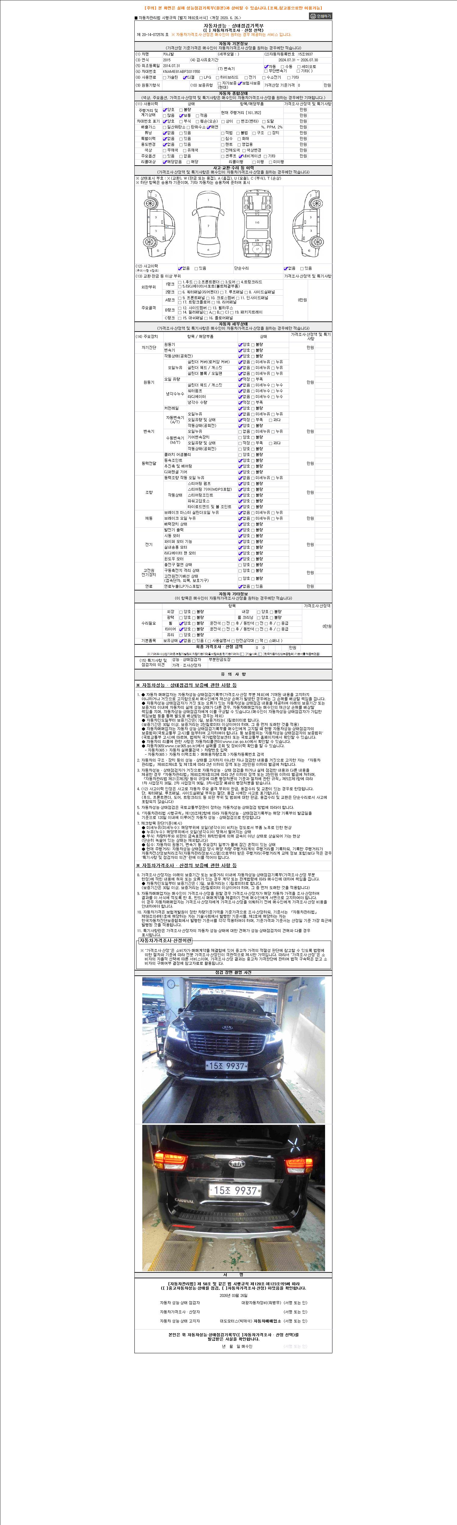 - 2. 차량 등록증이나 성능점검지 등을 상담자에게 요청및 확인하시고 사전에 미리 점검 하시기를 권유드립니다.