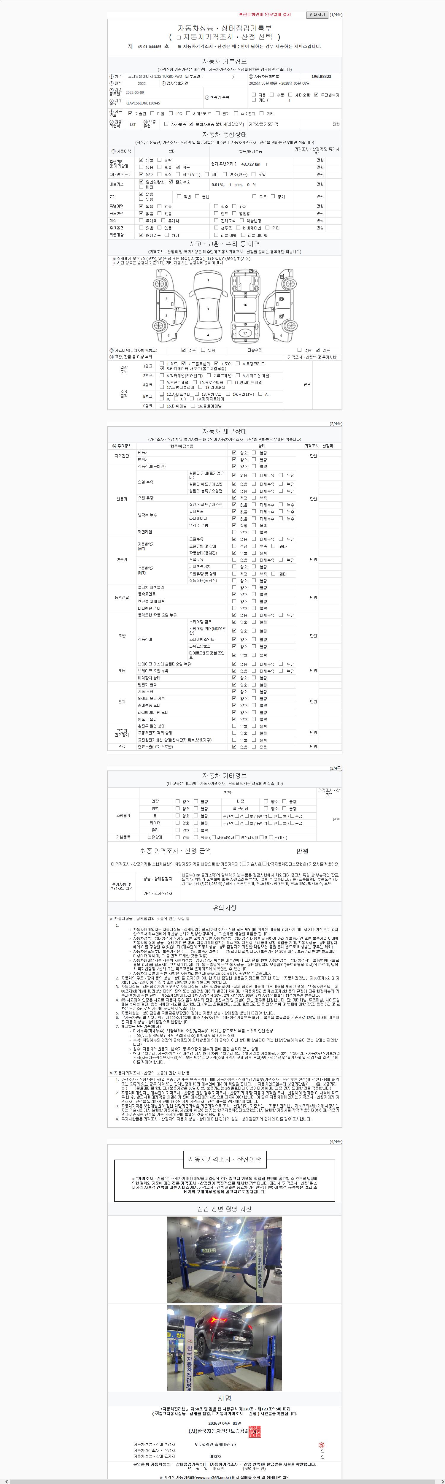 - 사고유무 : 성능기록부 참조