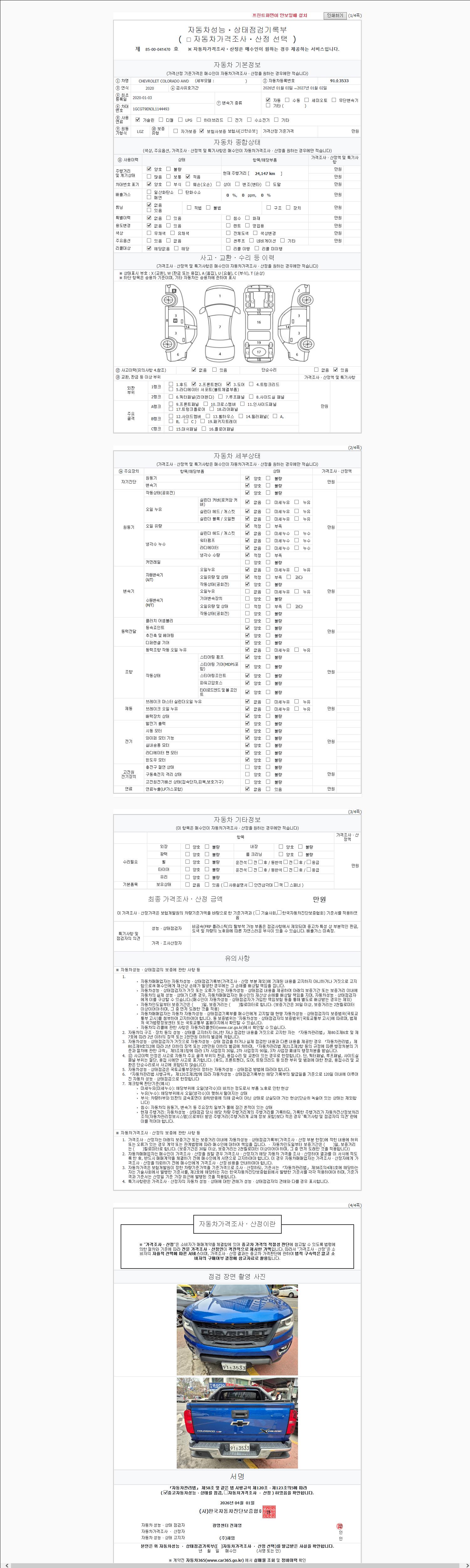 - 사고유무 : 성능기록부 참조