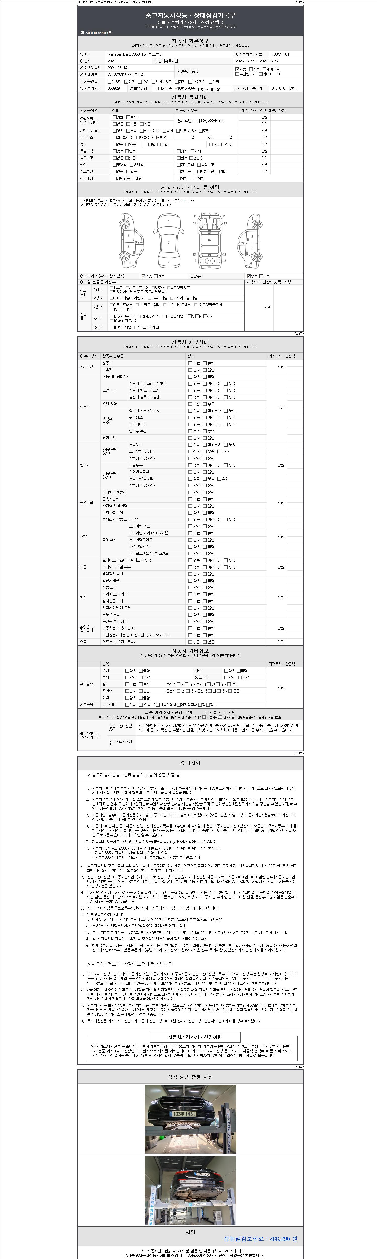 | 주행거리 | 65,283 km | 차량번호 | 103무1461 | 사고유무 | 성능기록부 참조 | 제시번호 | 제 2147483647 호 |
