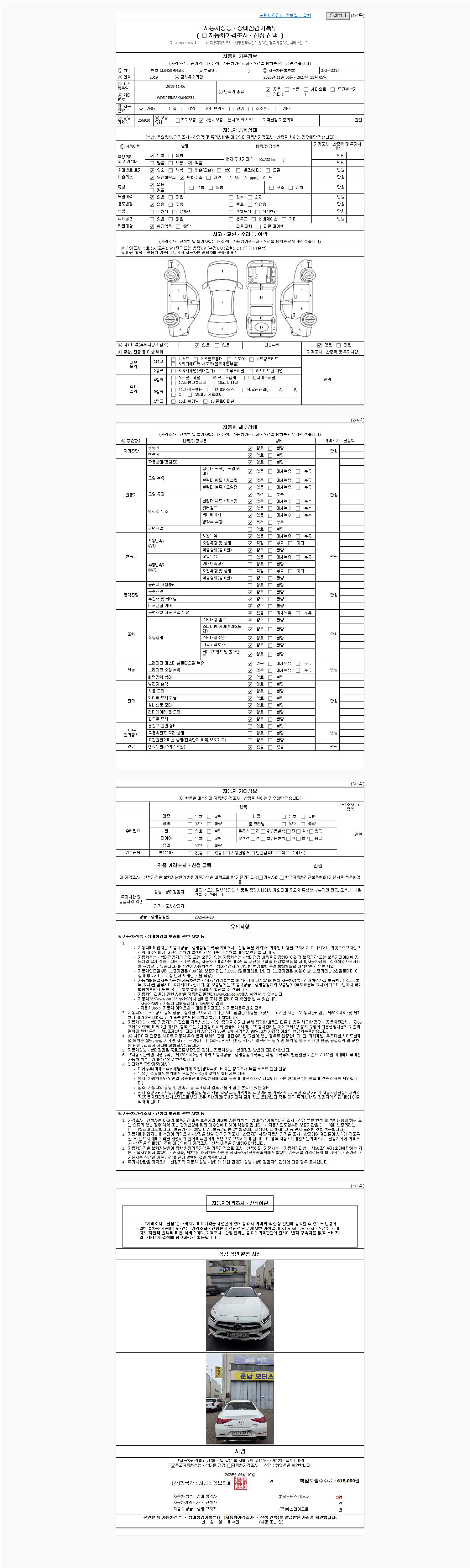 - 사고유무 : 성능기록부 참조