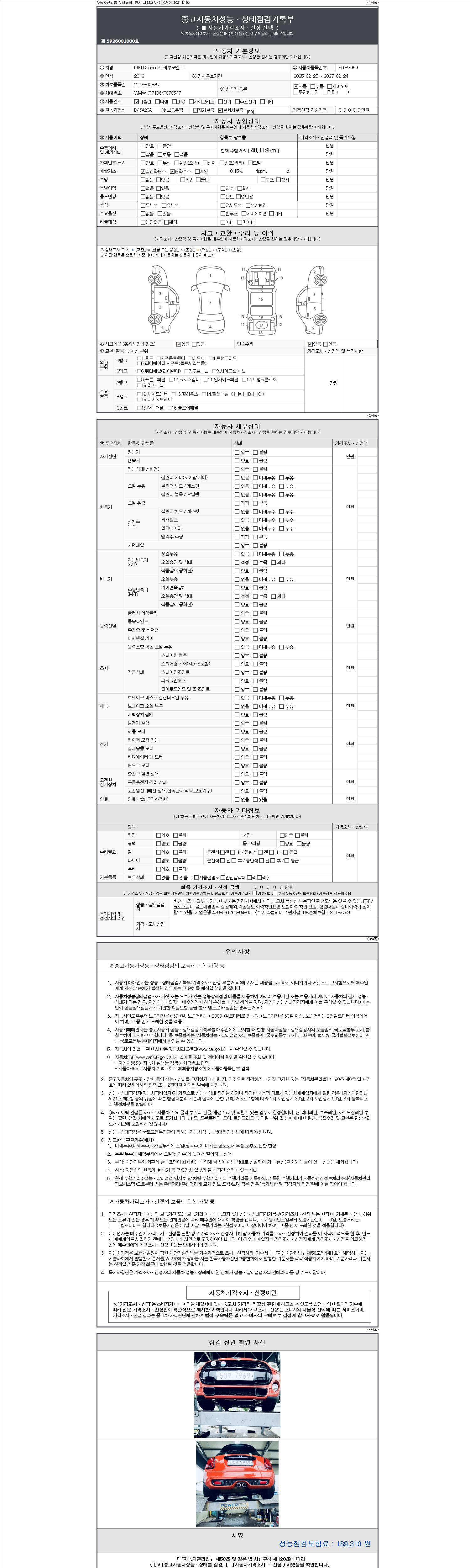 - 사고유무 : 성능기록부 참조