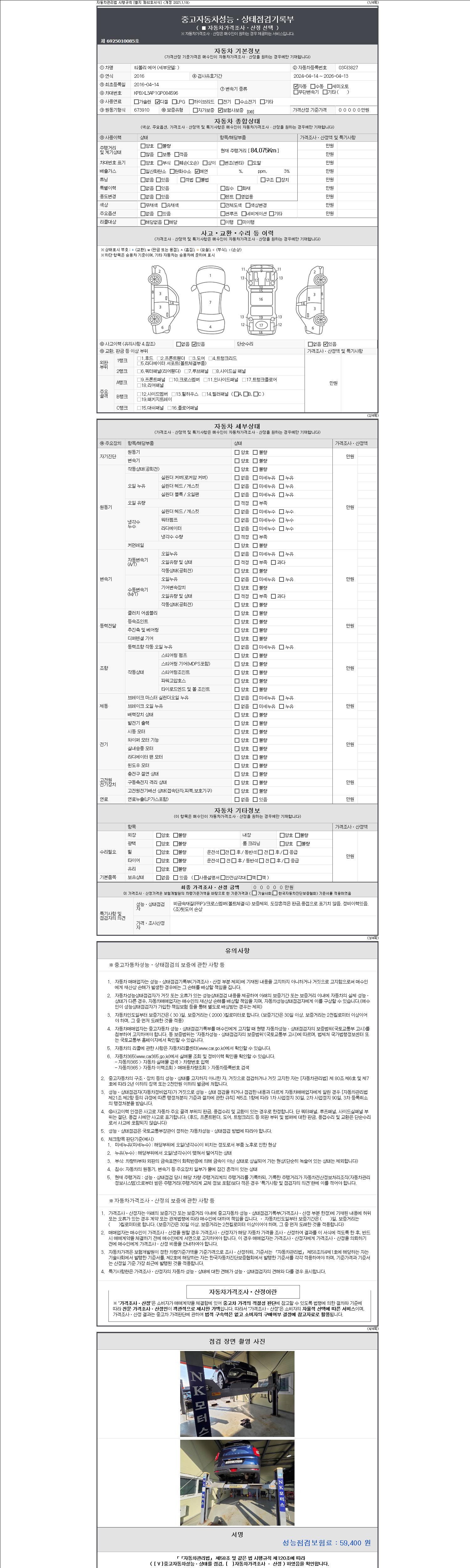 - 2. 차량 등록증이나 성능점검지 등을 상담자에게 요청및 확인하시고 사전에 미리 점검 하시기를 권유드립니다.