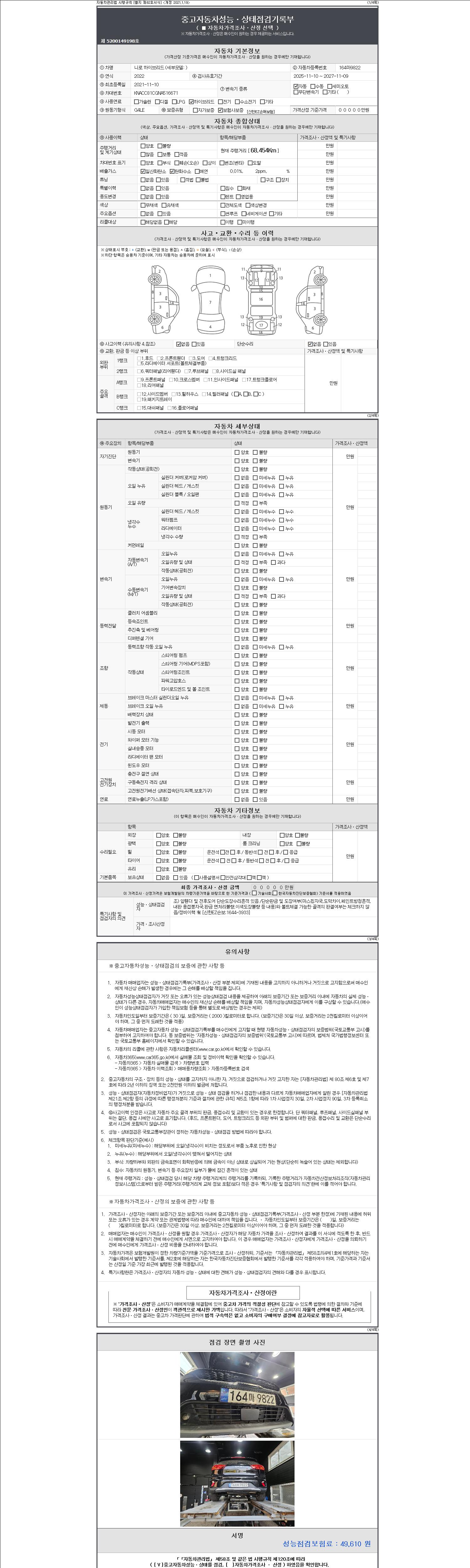 | 주행거리 | 68,454 km | 차량번호 | 164마9822 | 사고유무 | 성능기록부 참조 | 제시번호 | 제 2147483647 호 |