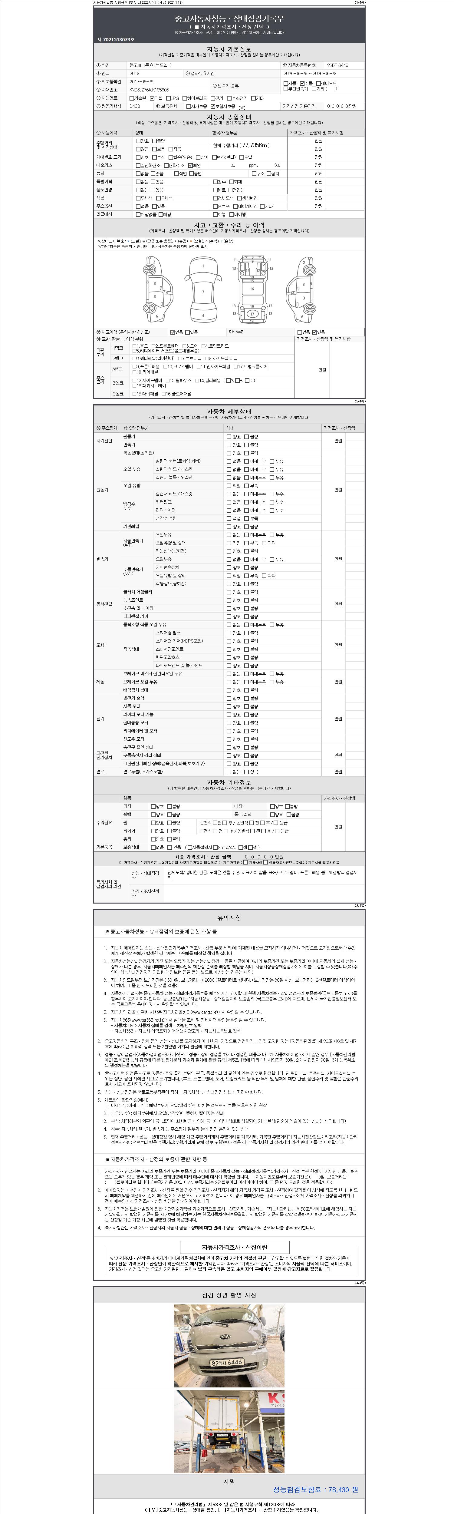- 2. 차량 등록증이나 성능점검지 등을 상담자에게 요청및 확인하시고 사전에 미리 점검 하시기를 권유드립니다.
