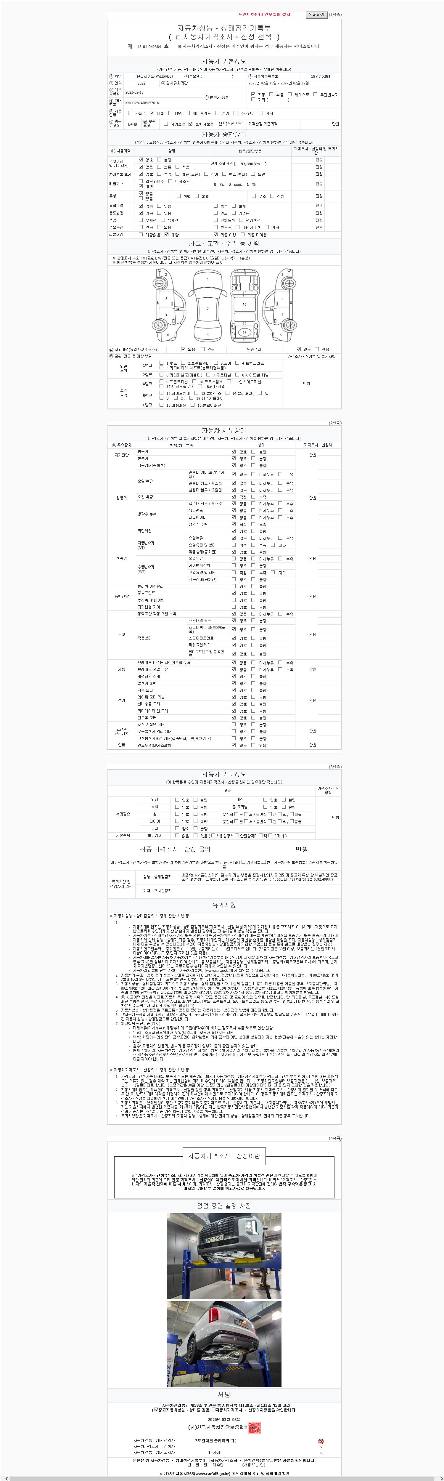 - 2. 차량 등록증이나 성능점검지 등을 상담자에게 요청및 확인하시고 사전에 미리 점검 하시기를 권유드립니다.