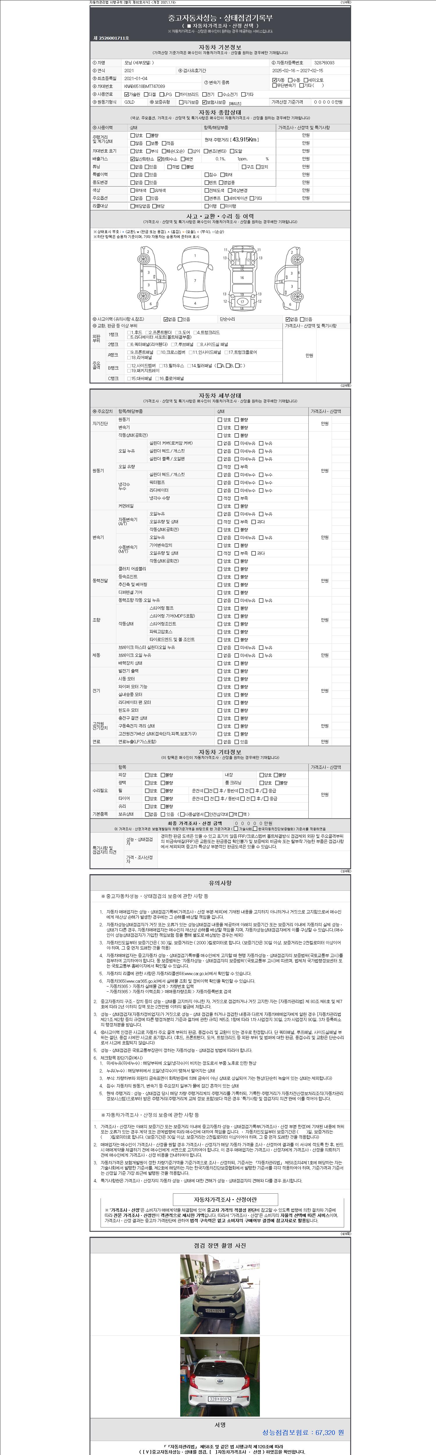 -중고자동차 매매업자를 통해 차량을 구입하실 경우 반드시 "중고자동차 성능, 상태점검 기록부"를 교뷰 받으셔야 하며, 매매업자는 반드시 의무 교부 하여야 압니다.