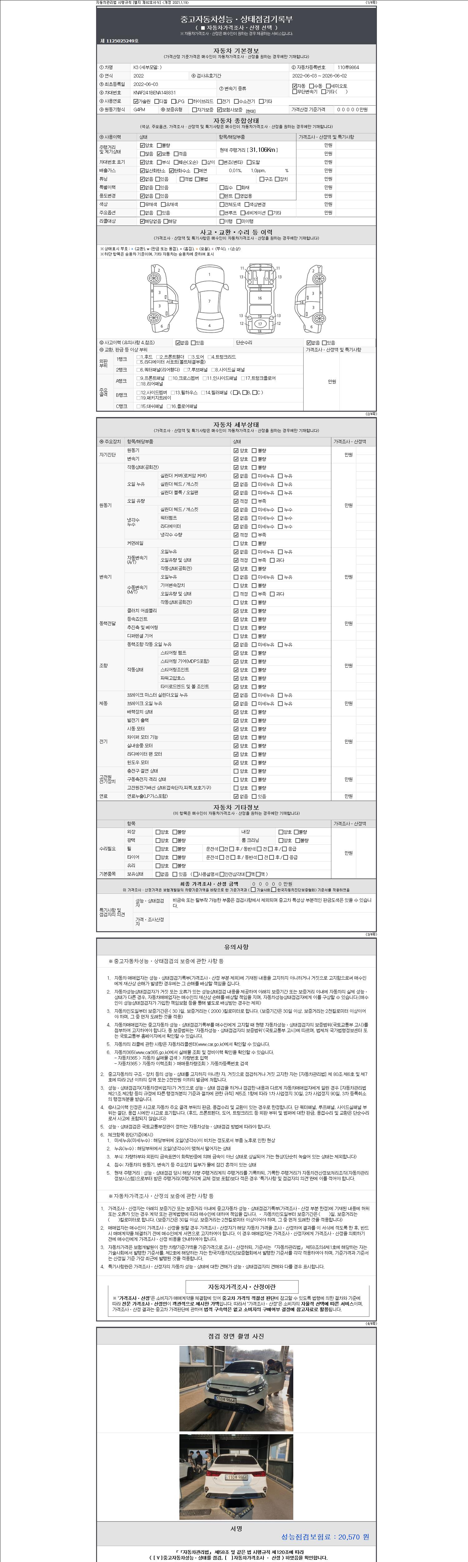 | 주행거리 | 31,106 km | 차량번호 | 110루9864 | 사고유무 | 성능기록부 참조 | 제시번호 | 제 2147483647 호 |