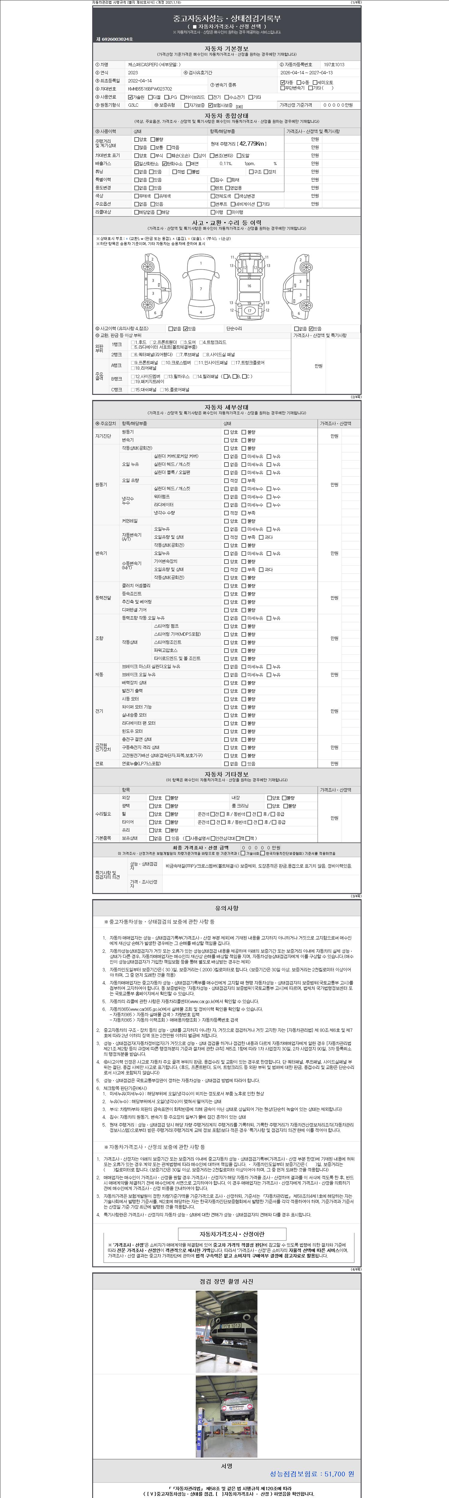 - 2. 차량 등록증이나 성능점검지 등을 상담자에게 요청및 확인하시고 사전에 미리 점검 하시기를 권유드립니다.