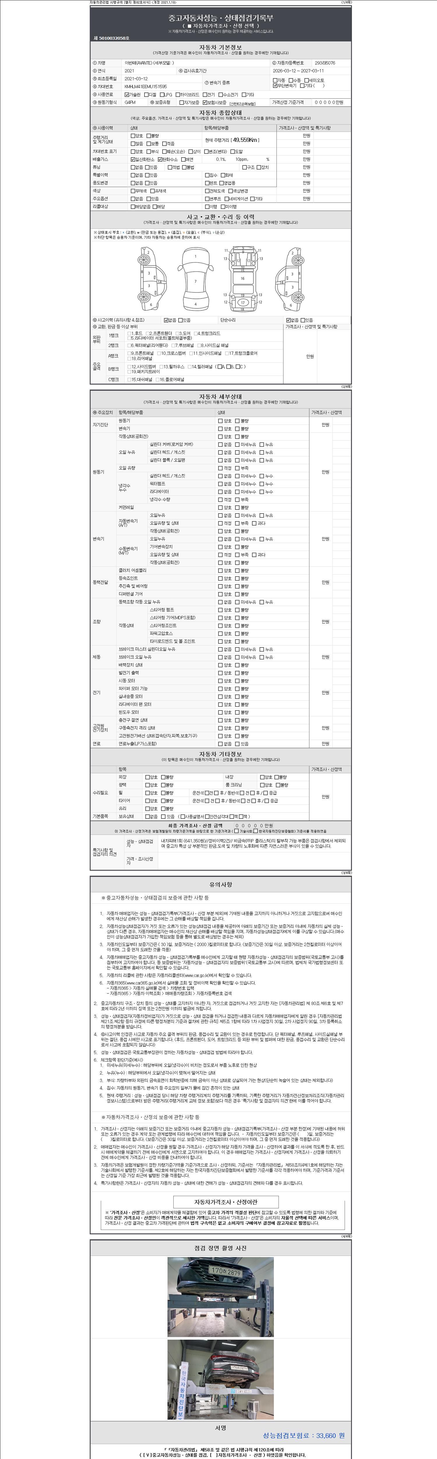 - 사고유무 : 성능기록부 참조