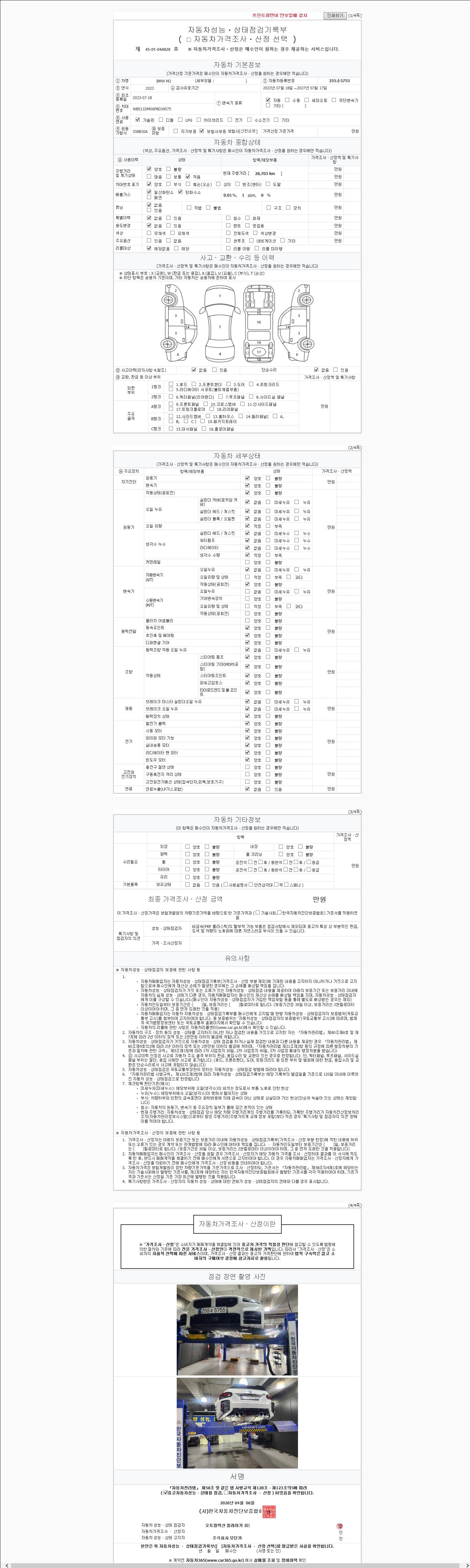 - 2. 차량 등록증이나 성능점검지 등을 상담자에게 요청및 확인하시고 사전에 미리 점검 하시기를 권유드립니다.