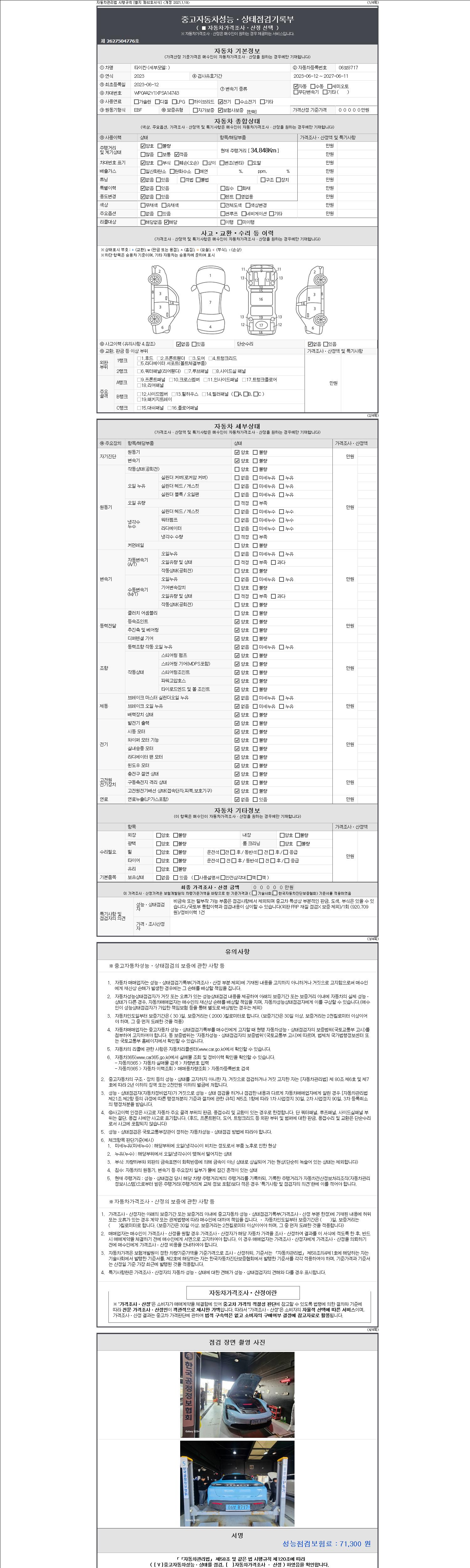 -중고자동차 매매업자를 통해 차량을 구입하실 경우 반드시 "중고자동차 성능, 상태점검 기록부"를 교뷰 받으셔야 하며, 매매업자는 반드시 의무 교부 하여야 압니다.