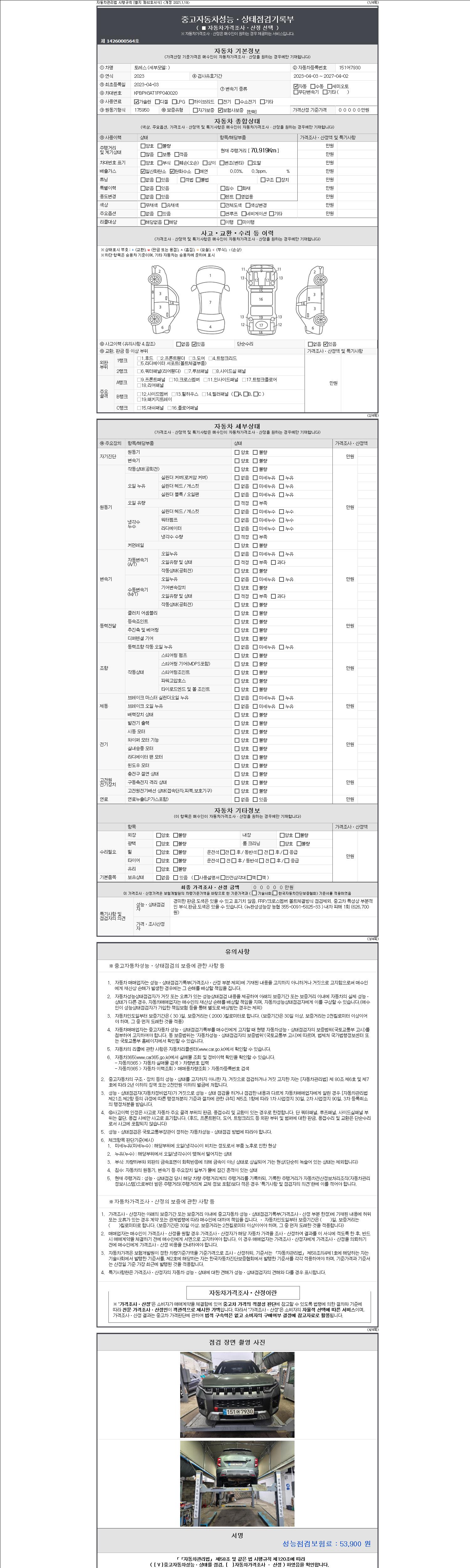- 2. 차량 등록증이나 성능점검지 등을 상담자에게 요청및 확인하시고 사전에 미리 점검 하시기를 권유드립니다.