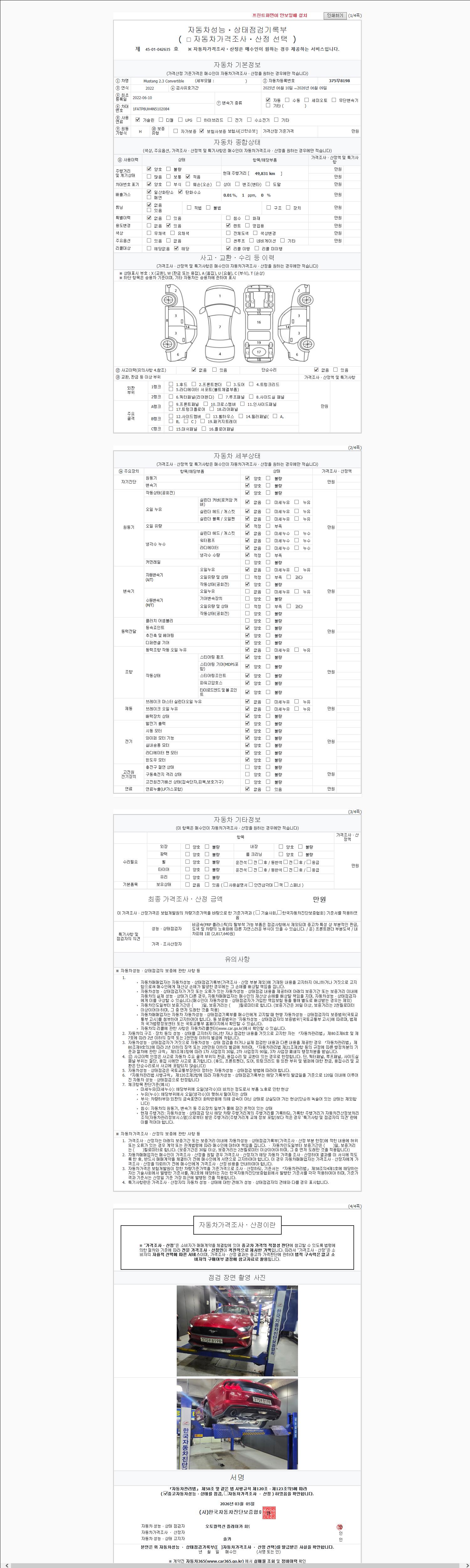- 사고유무 : 성능기록부 참조