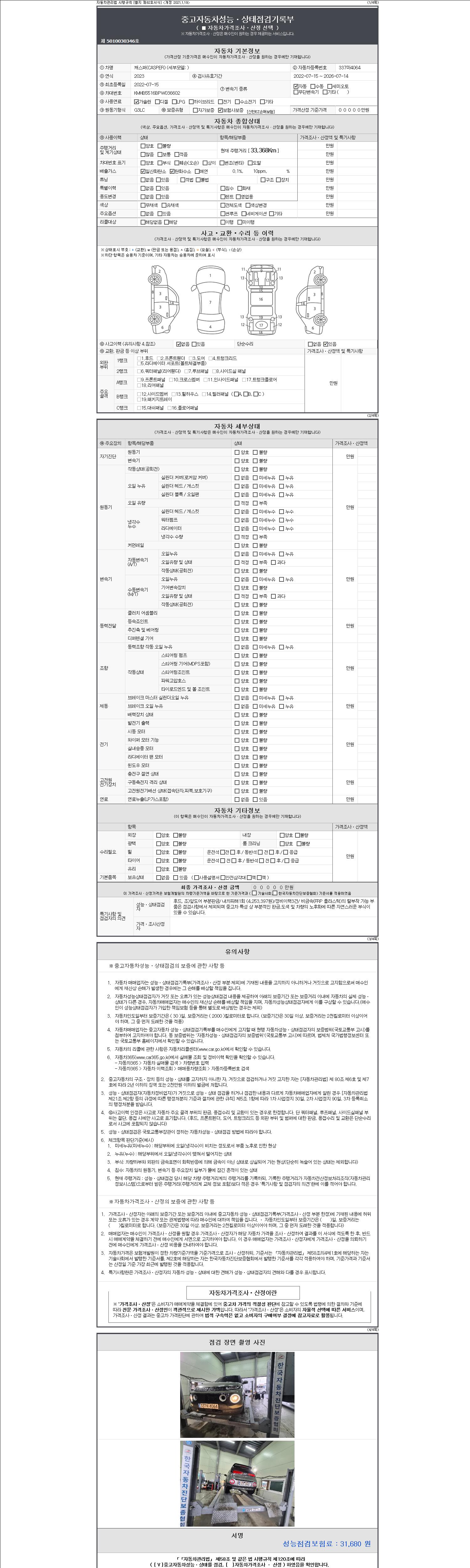 - 2. 차량 등록증이나 성능점검지 등을 상담자에게 요청및 확인하시고 사전에 미리 점검 하시기를 권유드립니다.