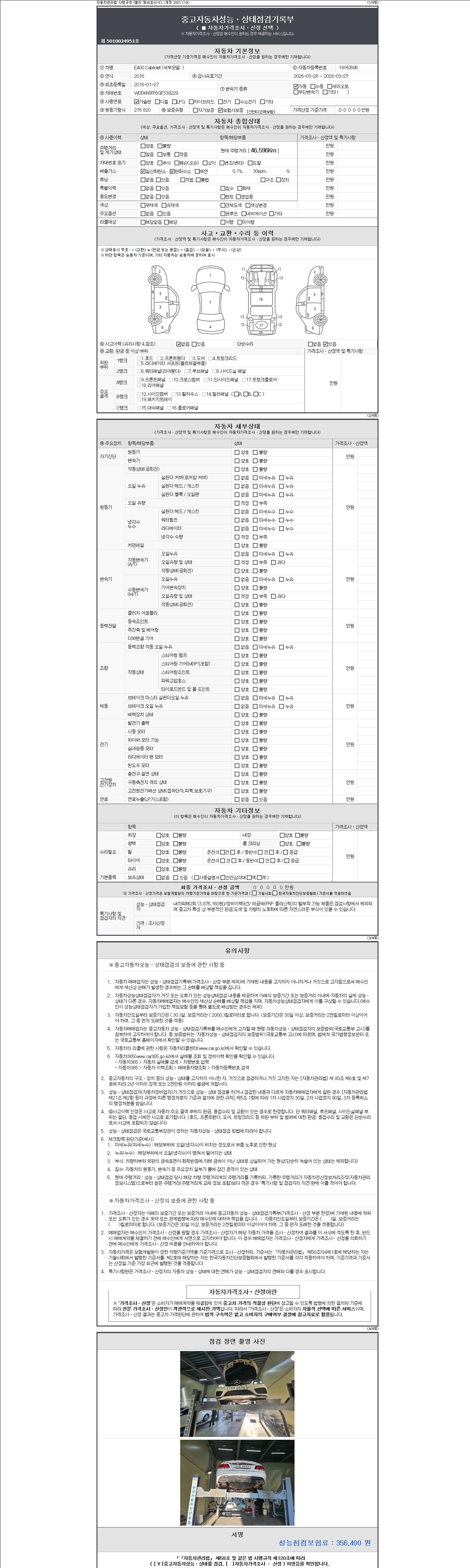 - 사고유무 : 성능기록부 참조