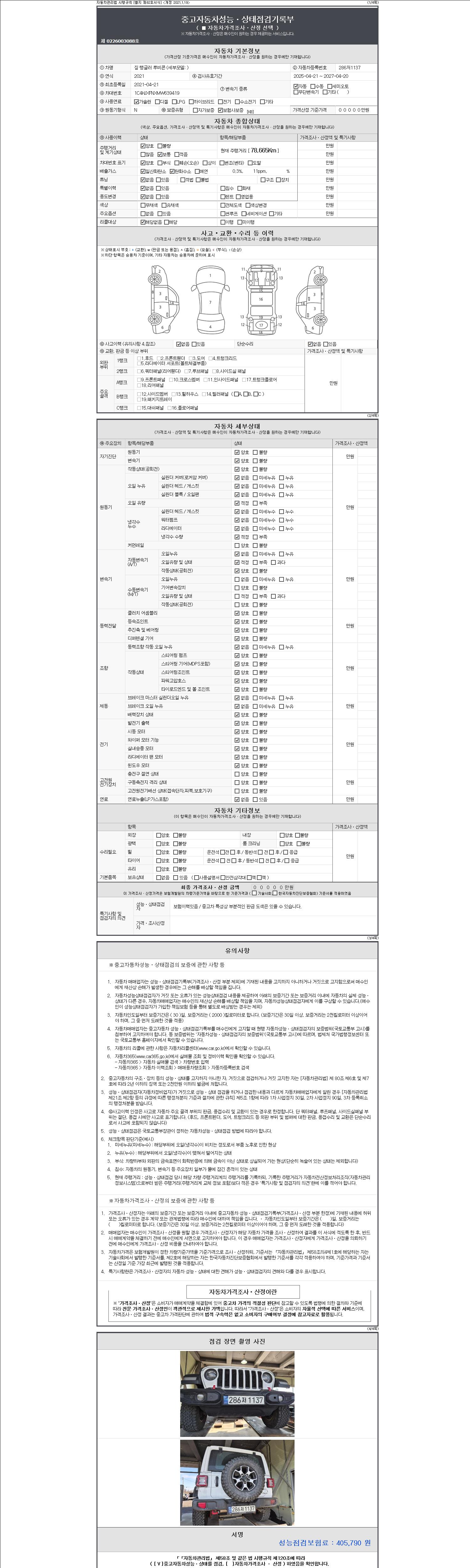 | 주행거리 | 78,665 km | 차량번호 | 286저1137 | 사고유무 | 성능기록부 참조 | 제시번호 | 제 2147483647 호 |