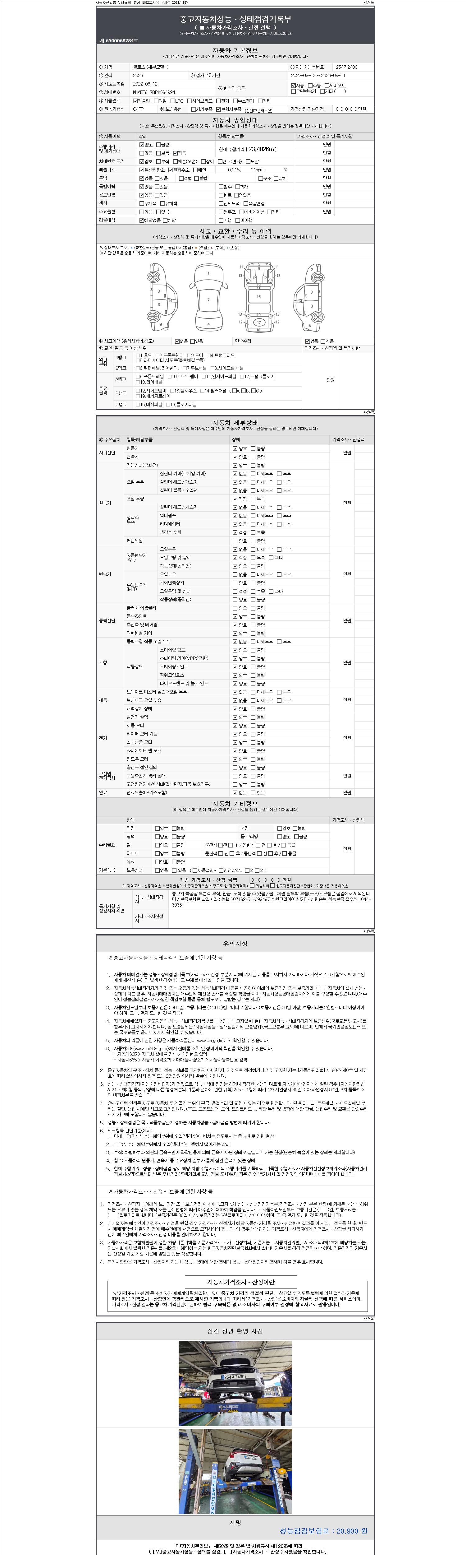 | 주행거리 | 23,402 km | 차량번호 | 254가2400 | 사고유무 | 성능기록부 참조 | 제시번호 | 제 2147483647 호 |