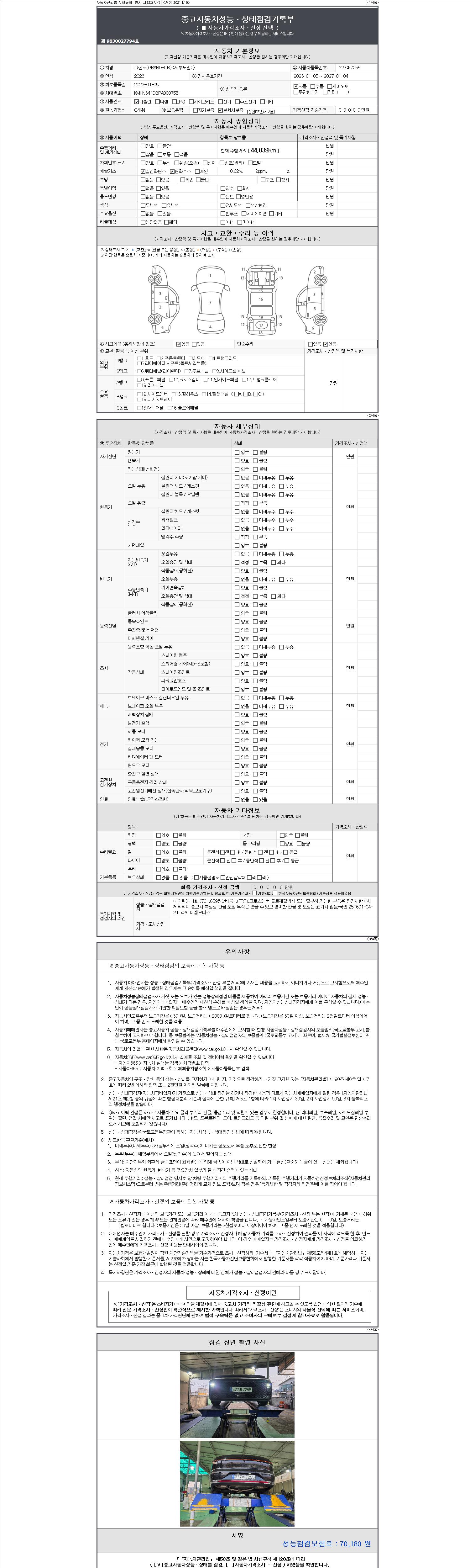 • 2. 차량 등록증이나 성능점검지 등을 상담자에게 요청및 확인하시고 사전에 미리 점검 하시기를 권유드립니다.