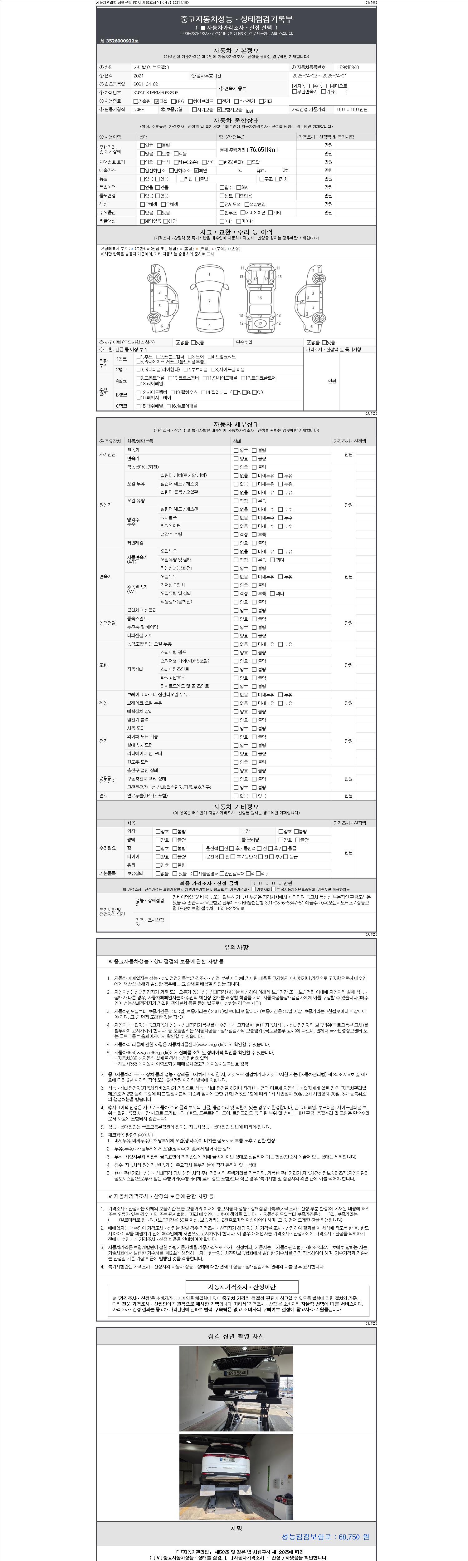 - 2. 차량 등록증이나 성능점검지 등을 상담자에게 요청및 확인하시고 사전에 미리 점검 하시기를 권유드립니다.