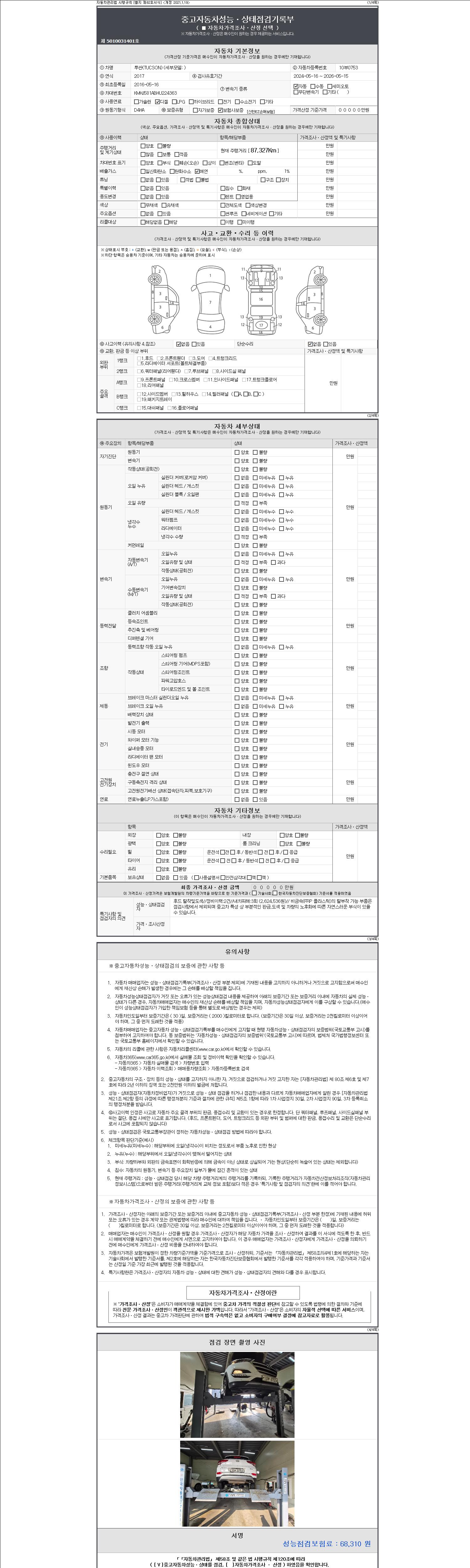 - 2. 차량 등록증이나 성능점검지 등을 상담자에게 요청및 확인하시고 사전에 미리 점검 하시기를 권유드립니다.