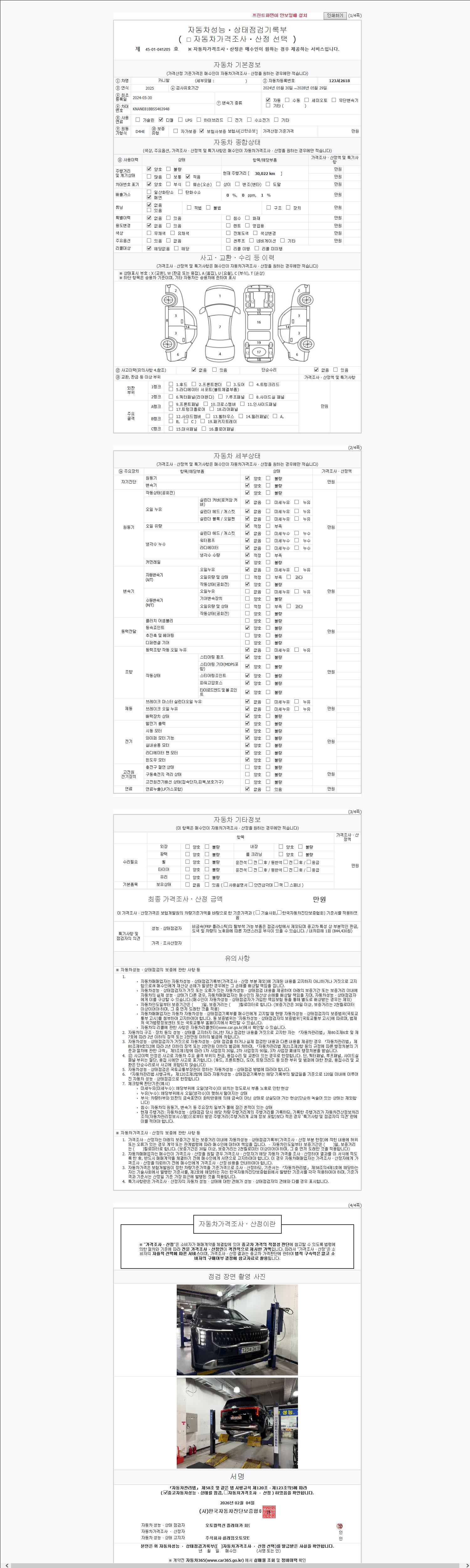 - 2. 차량 등록증이나 성능점검지 등을 상담자에게 요청및 확인하시고 사전에 미리 점검 하시기를 권유드립니다.