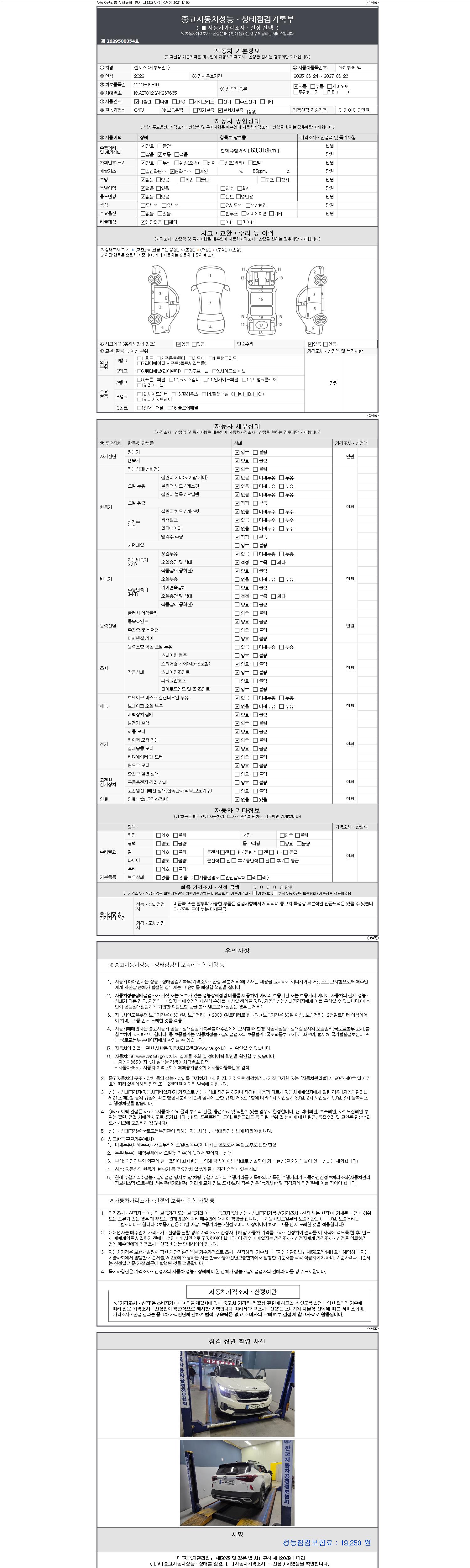 | 주행거리 | 63,318 km | 차량번호 | 360루6624 | 사고유무 | 성능기록부 참조 | 제시번호 | 제 2147483647 호 |
