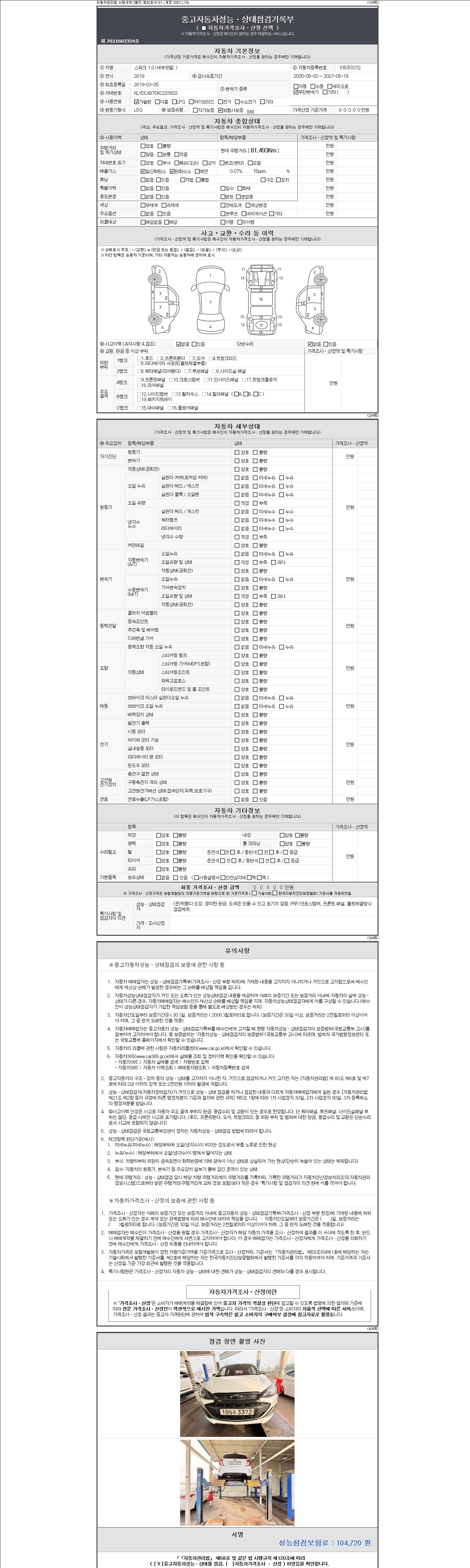| 주행거리 | 81,493 km | 차량번호 | 105주3372 | 사고유무 | 성능기록부 참조 | 제시번호 | 제 2147483647 호 |
