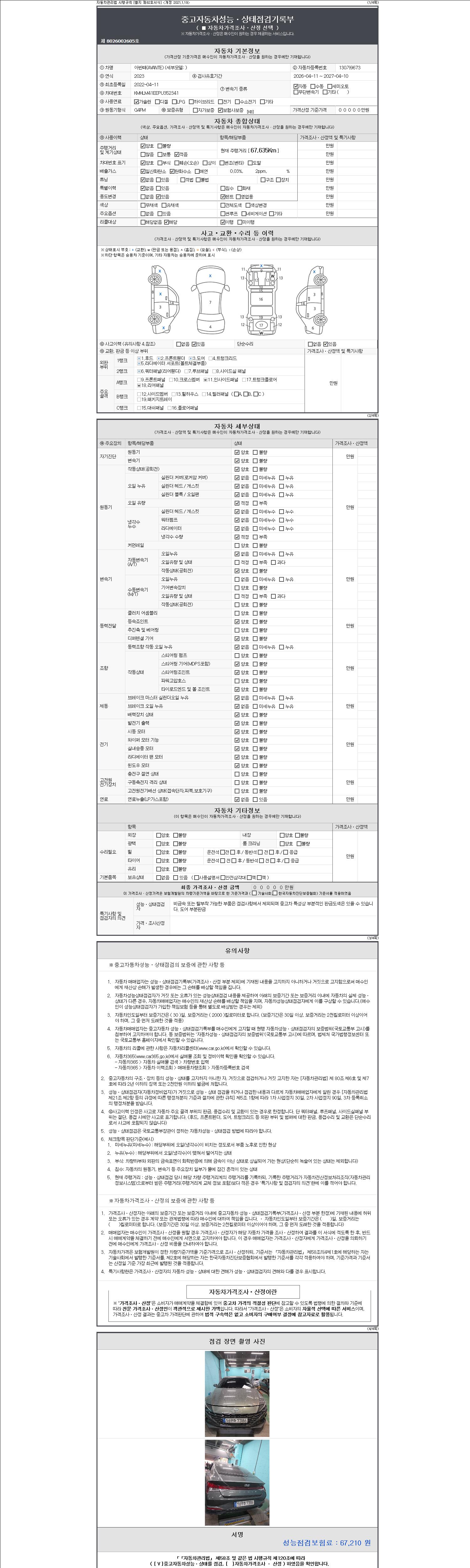 | 주행거리 | 67,635 km | 차량번호 | 130가9673 | 사고유무 | 성능기록부 참조 | 제시번호 | 제 2147483647 호 |