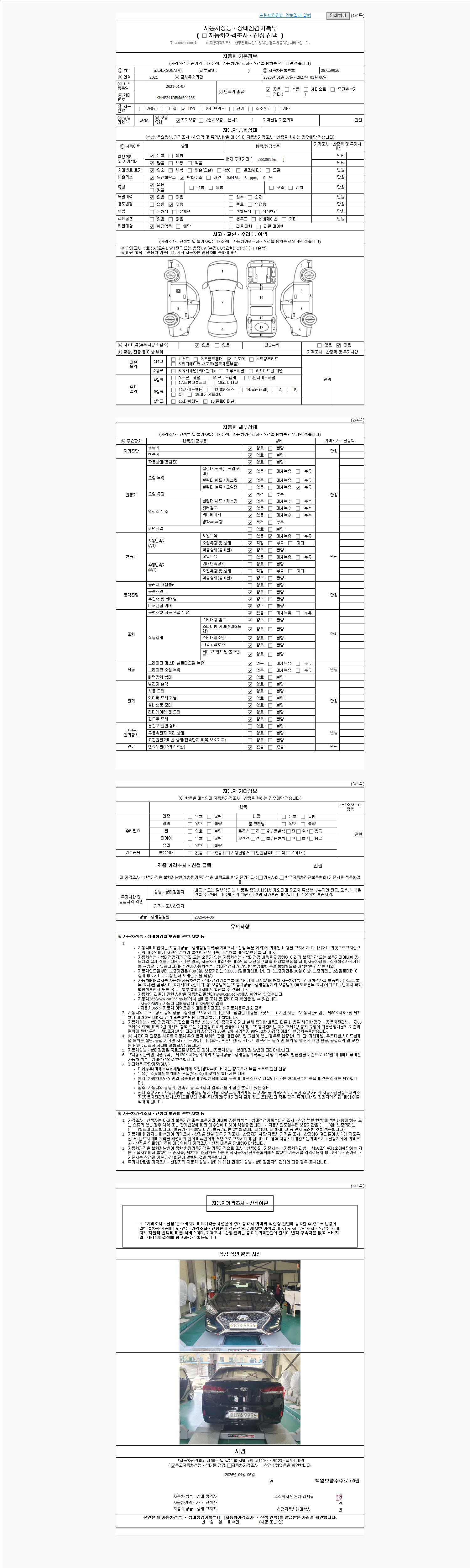 -중고자동차 매매업자를 통해 차량을 구입하실 경우 반드시 "중고자동차 성능, 상태점검 기록부"를 교뷰 받으셔야 하며, 매매업자는 반드시 의무 교부 하여야 압니다.