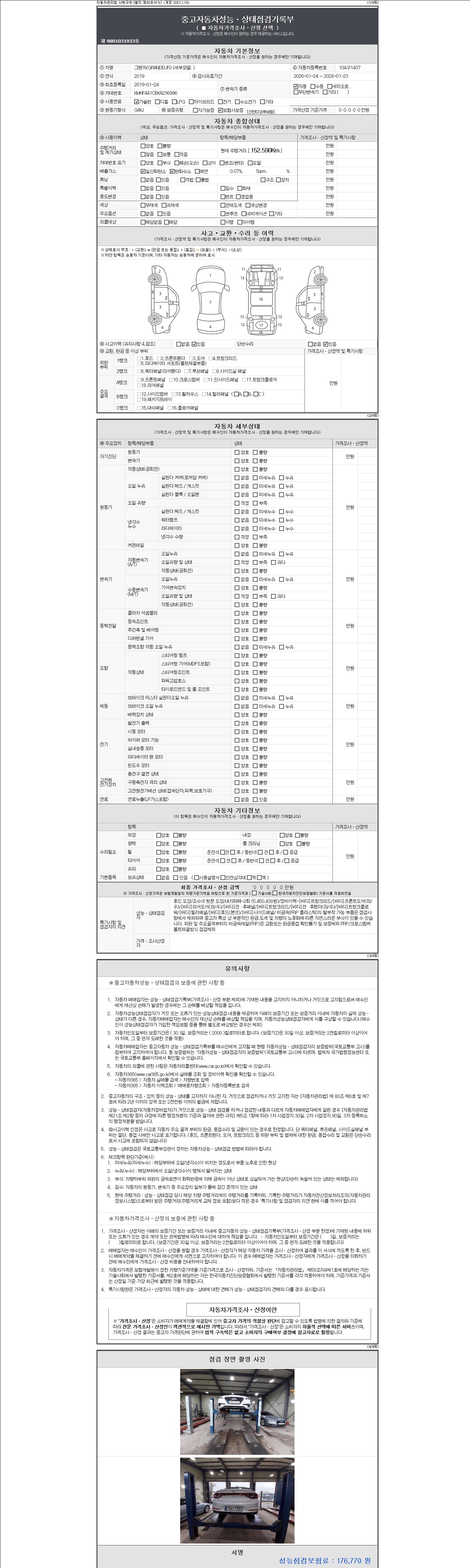 - 2. 차량 등록증이나 성능점검지 등을 상담자에게 요청및 확인하시고 사전에 미리 점검 하시기를 권유드립니다.