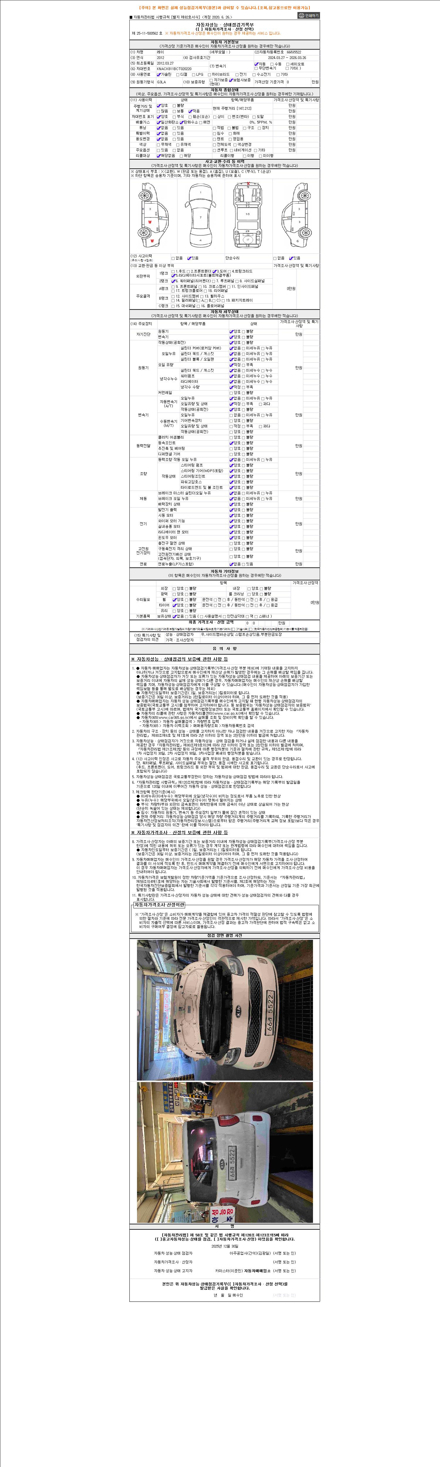 - 2. 차량 등록증이나 성능점검지 등을 상담자에게 요청및 확인하시고 사전에 미리 점검 하시기를 권유드립니다.